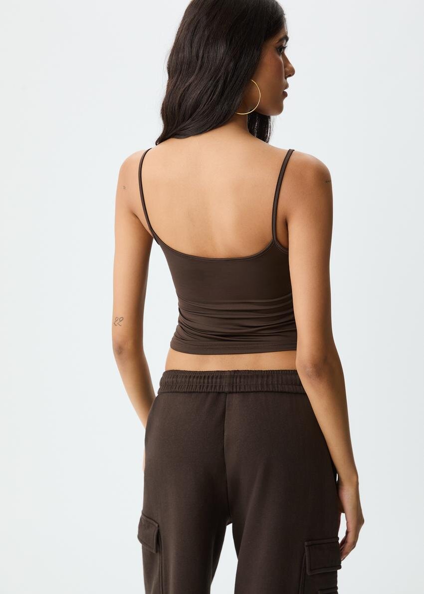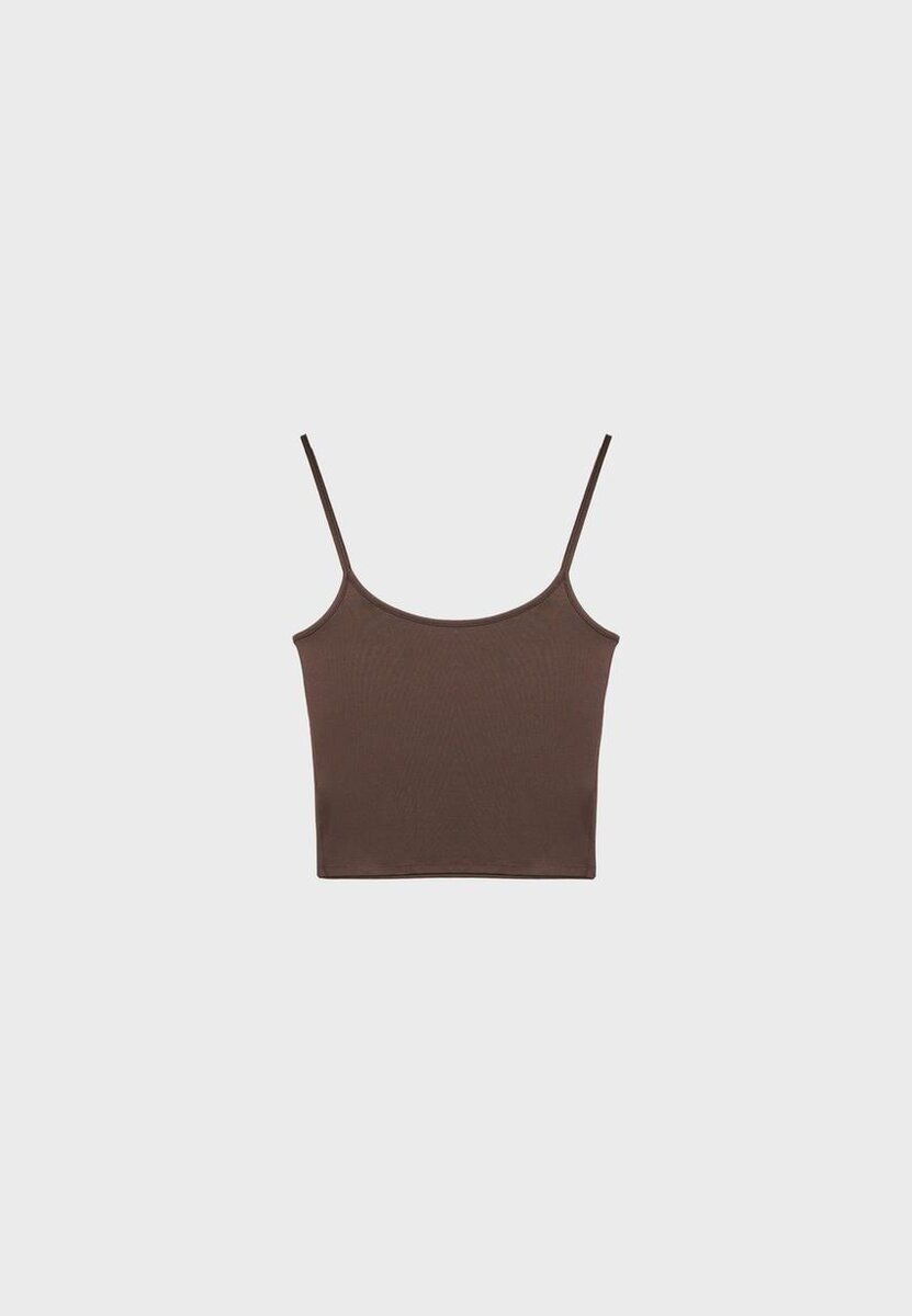 Haut ajusté à encolure ronde et fines bretelles. Disponible dans une gamme de couleurs.