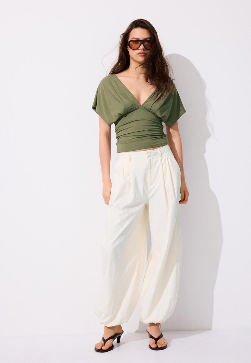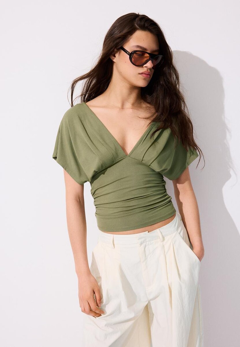 Haut à col en V avec ceinture chez Stradivarius pour seulement 25,9 $ Disponible pour une durée limitée. Null pour femmes Toujours tendance, venez le découvrir dès maintenant !
