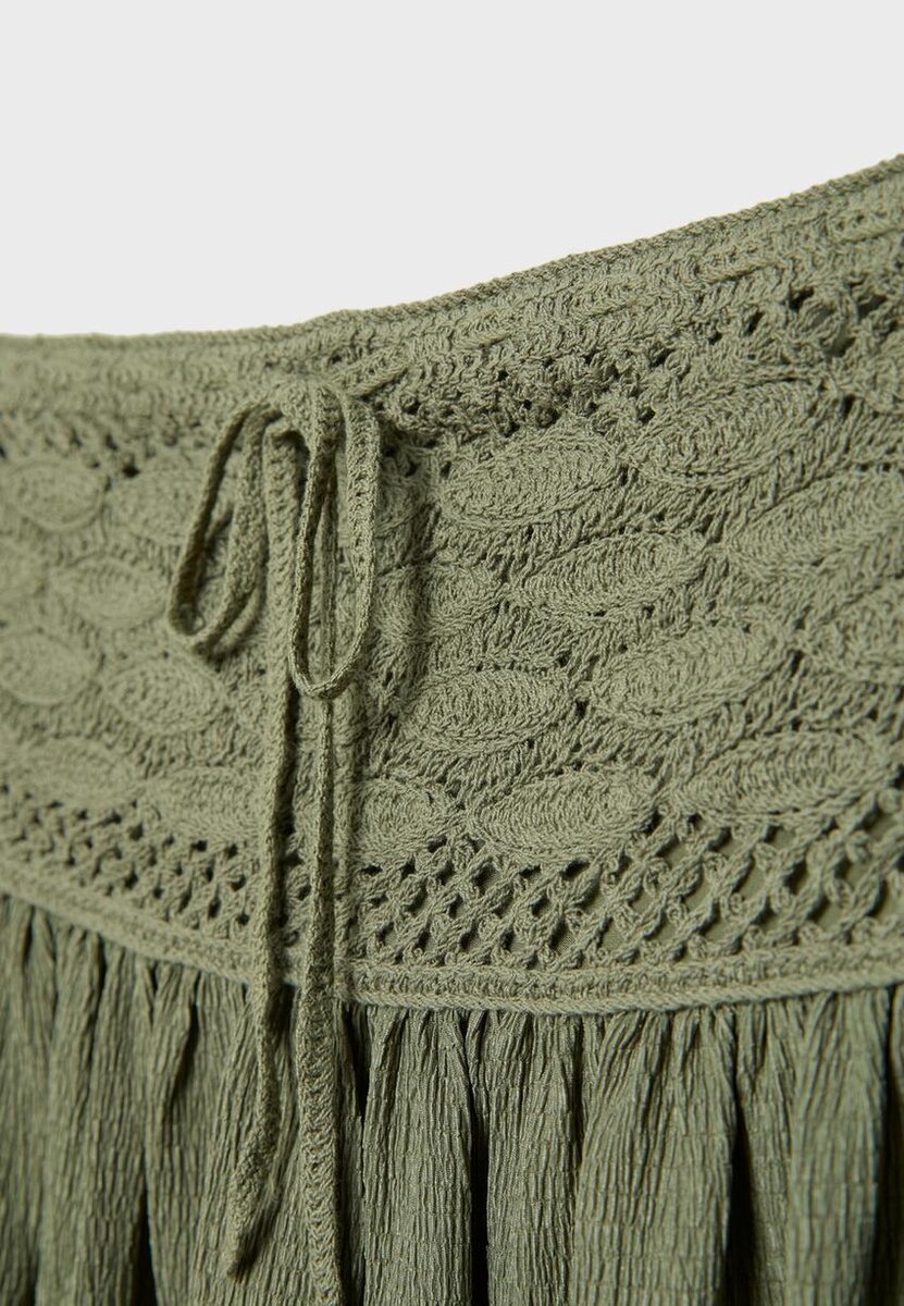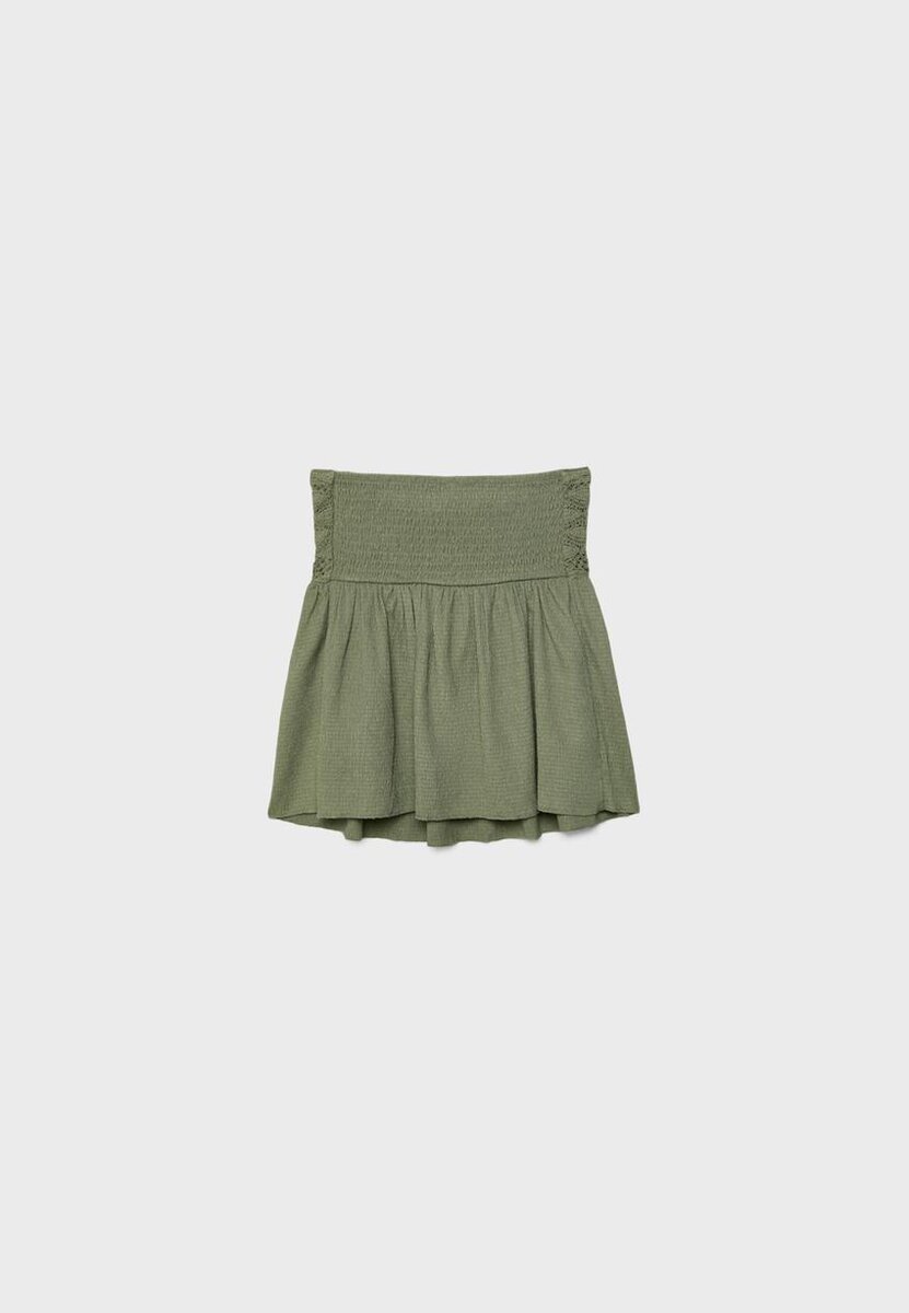 Haut bandeau fluide avec dos smocké et élastiqué. Orné d’un détail en crochet avec un nœud sur le devant. Disponible en plusieurs couleurs.