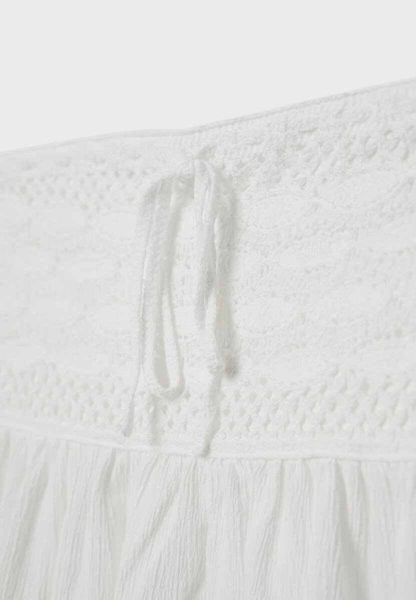 Hauts à encolure bandeau fluide. Dos smocké élastiqué. Avec détail en crochet et lien à nouer sur le devant. Disponible en plusieurs couleurs.