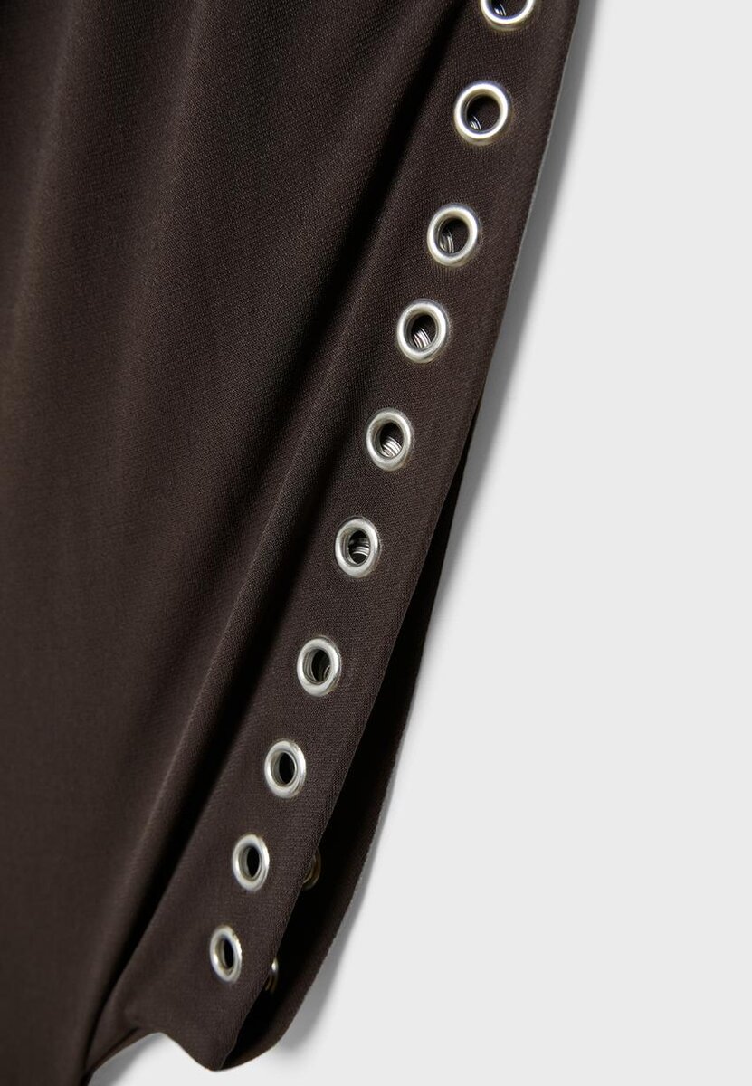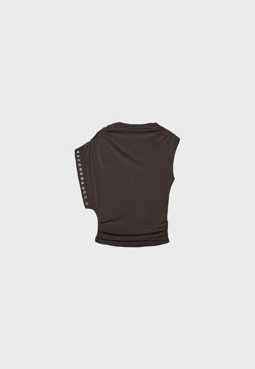 Haut sans manches asymétrique à col rond. Ourlet ajusté. Détails clous.