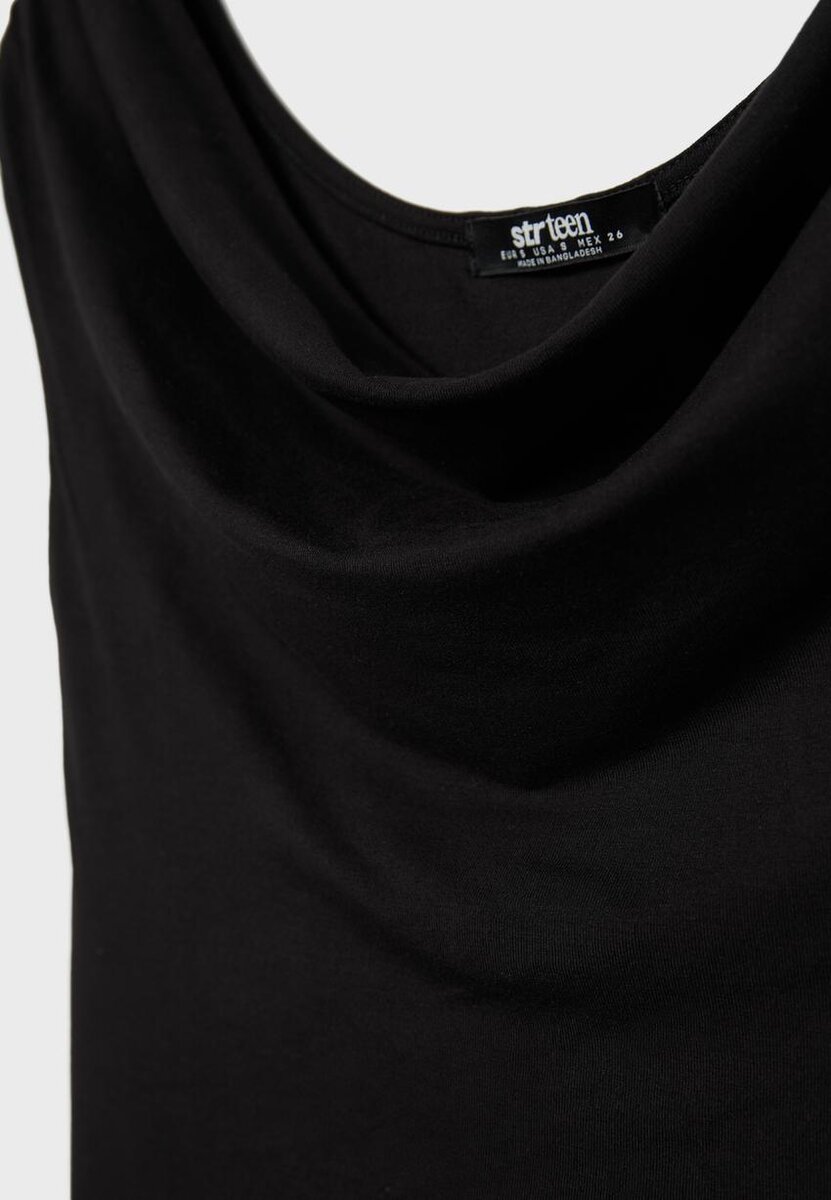 Haut sans manches ajusté avec encolure asymétrique. Disponible en plusieurs couleurs.