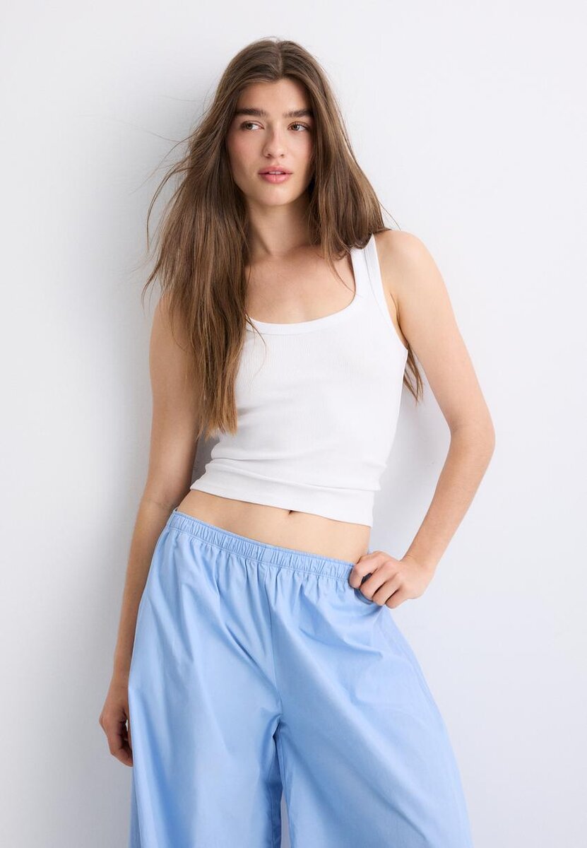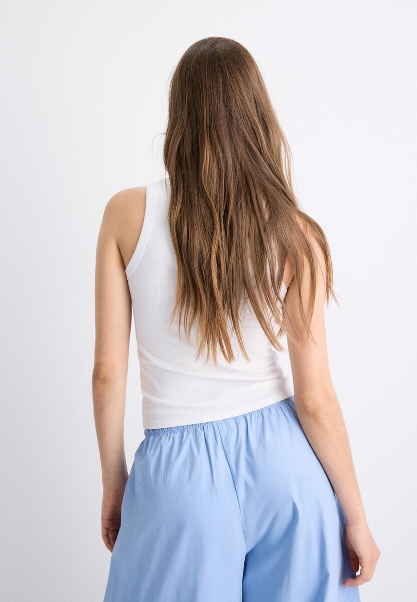 T-shirt à dos nageur côtelé chez Stradivarius pour seulement 14,9 $ Disponible pour une durée limitée. Mix to Win pour femmes Toujours tendance, venez le découvrir dès maintenant !