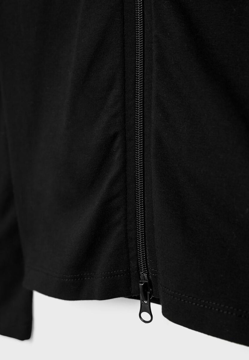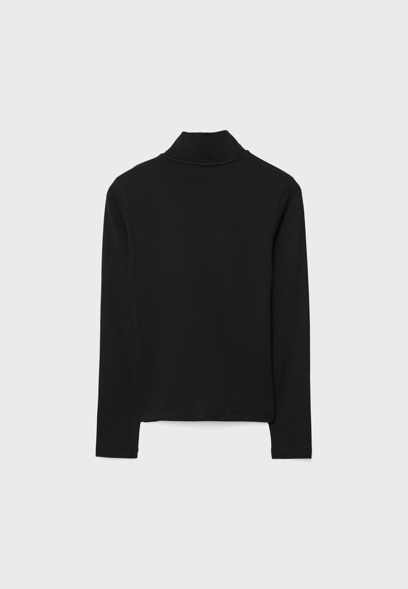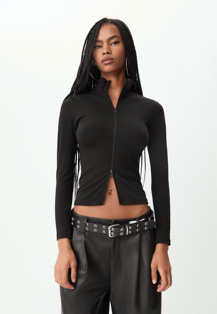T-shirt à manches longues et col montant. Fermeture à glissière bidirectionnelle sur le devant.
