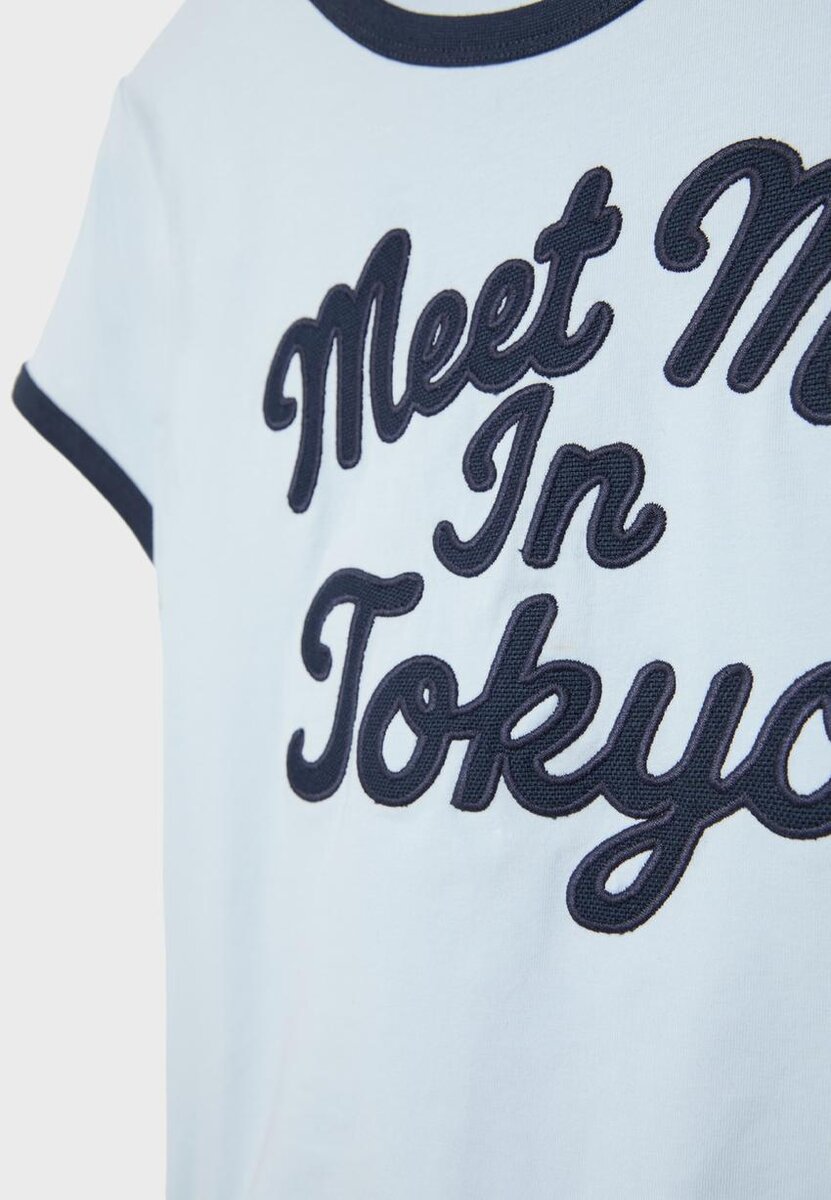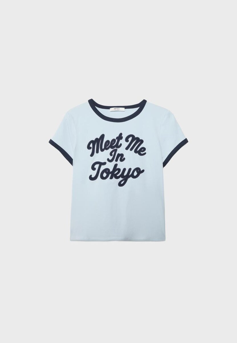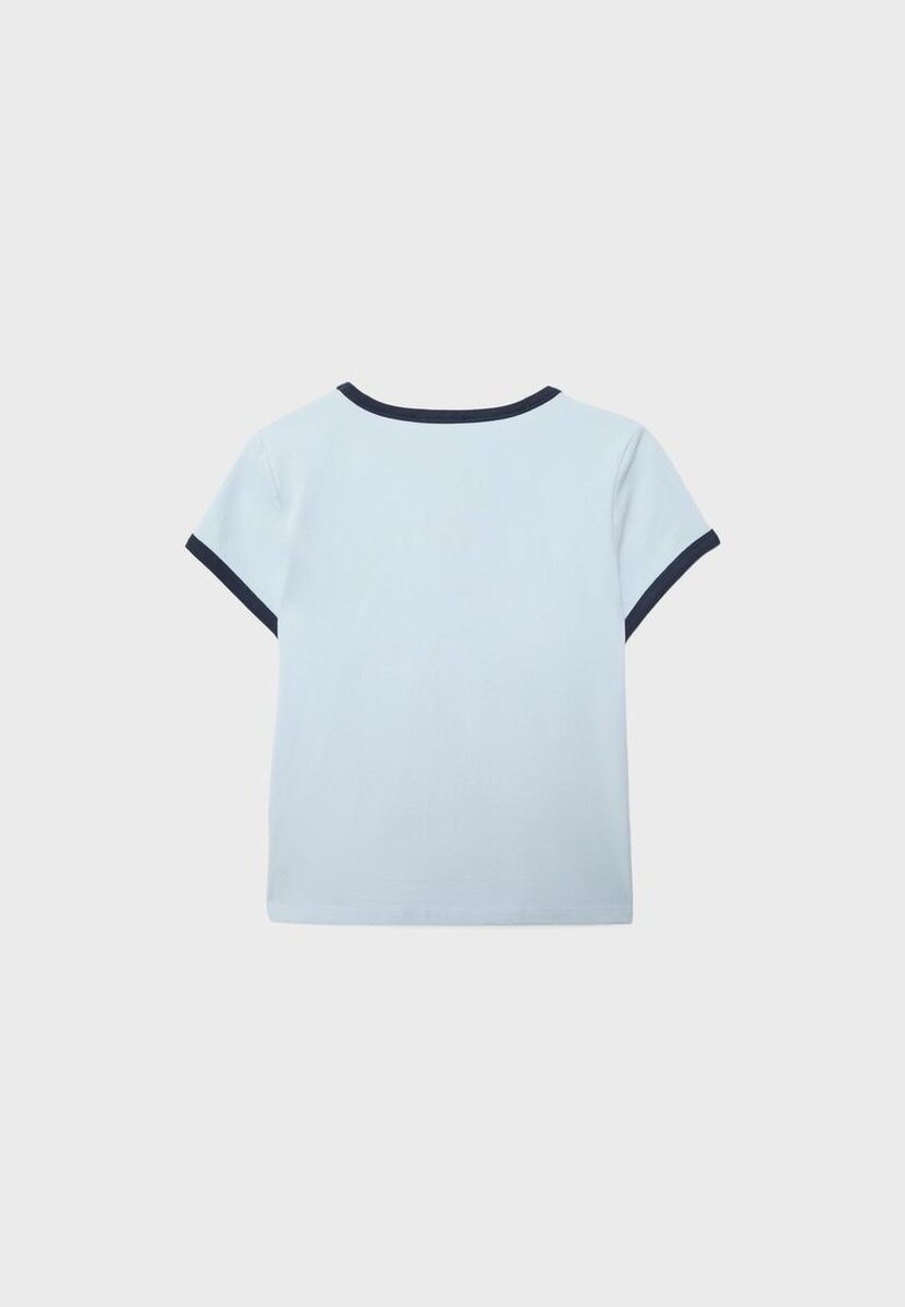 T-shirt à col rond et manches courtes. Finitions contrastées et imprimé sur le devant.