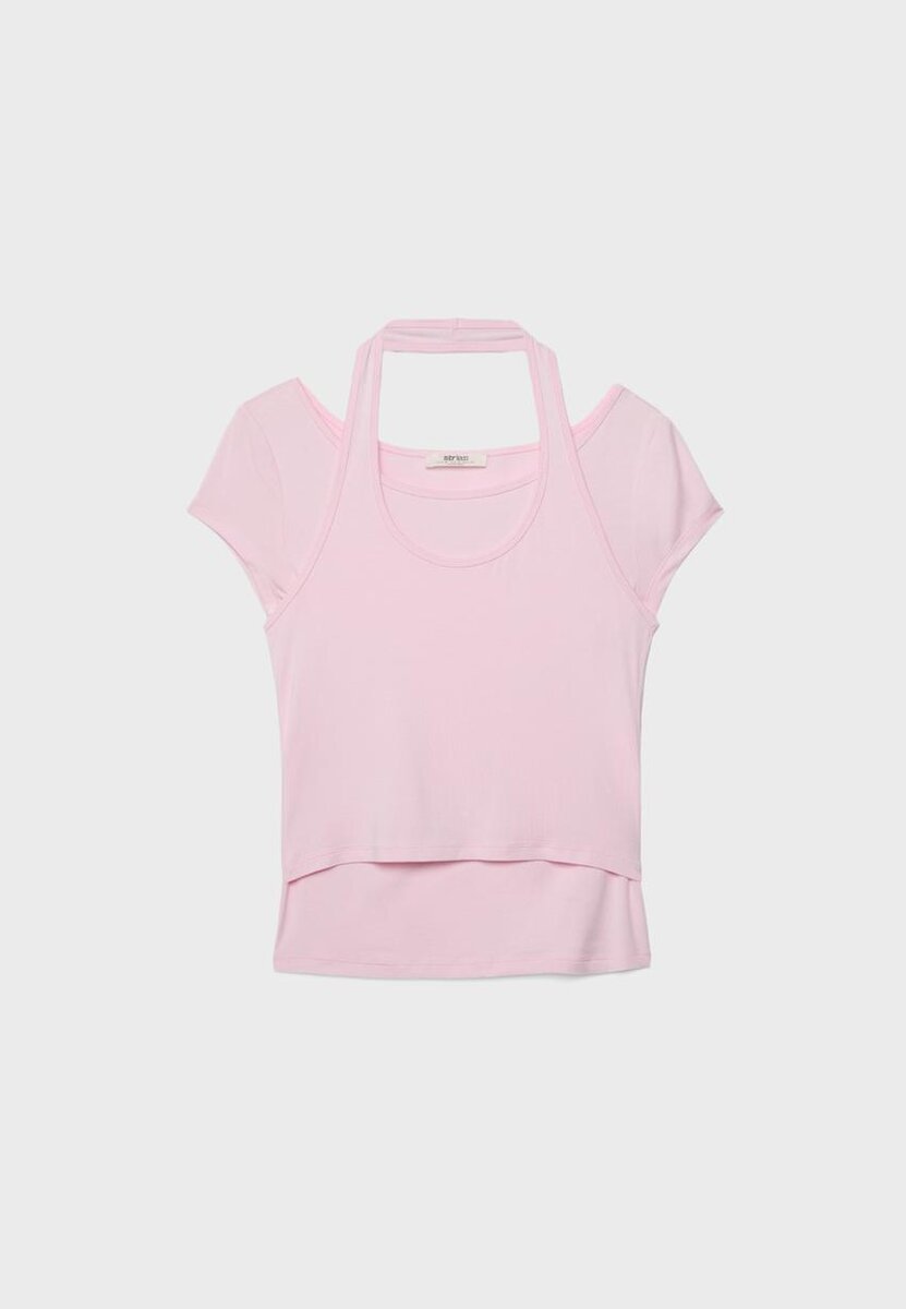 T-shirt à manches courtes double épaisseur chez Stradivarius pour seulement 25,9 $ Disponible pour une durée limitée. Mocacos Nuevo pour femmes Toujours à la mode, venez découvrir dès maintenant !