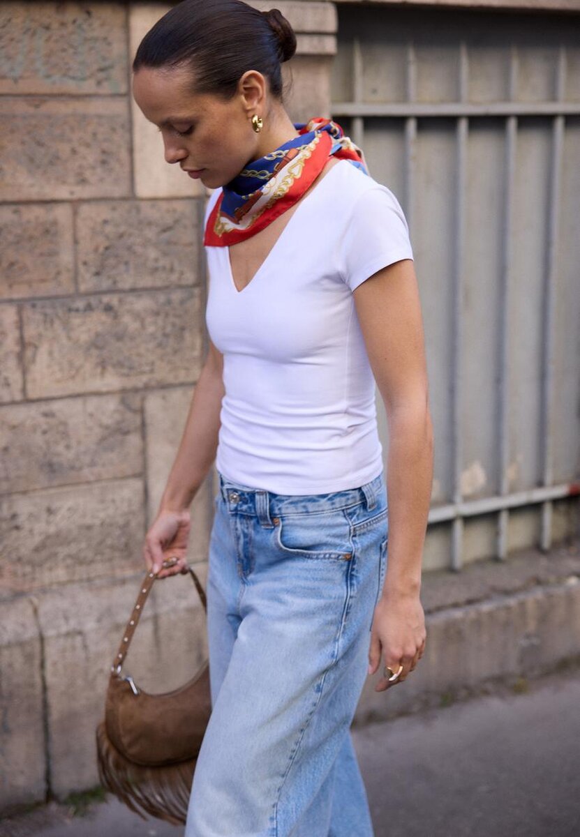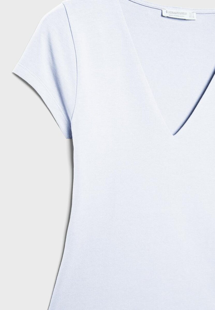 T-shirt à col en V et manches courtes chez Stradivarius pour seulement 15,9 $ Disponible pour une durée limitée. Mocacos Nuevo pour femmes Toujours à la mode, venez découvrir dès maintenant !