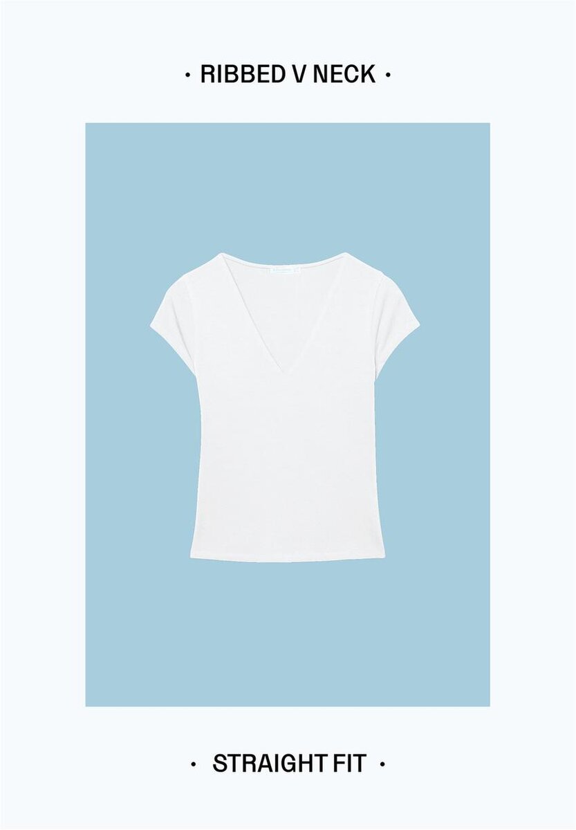 T-shirt ajusté. Col en V et manches courtes. Disponible dans une gamme de couleurs.