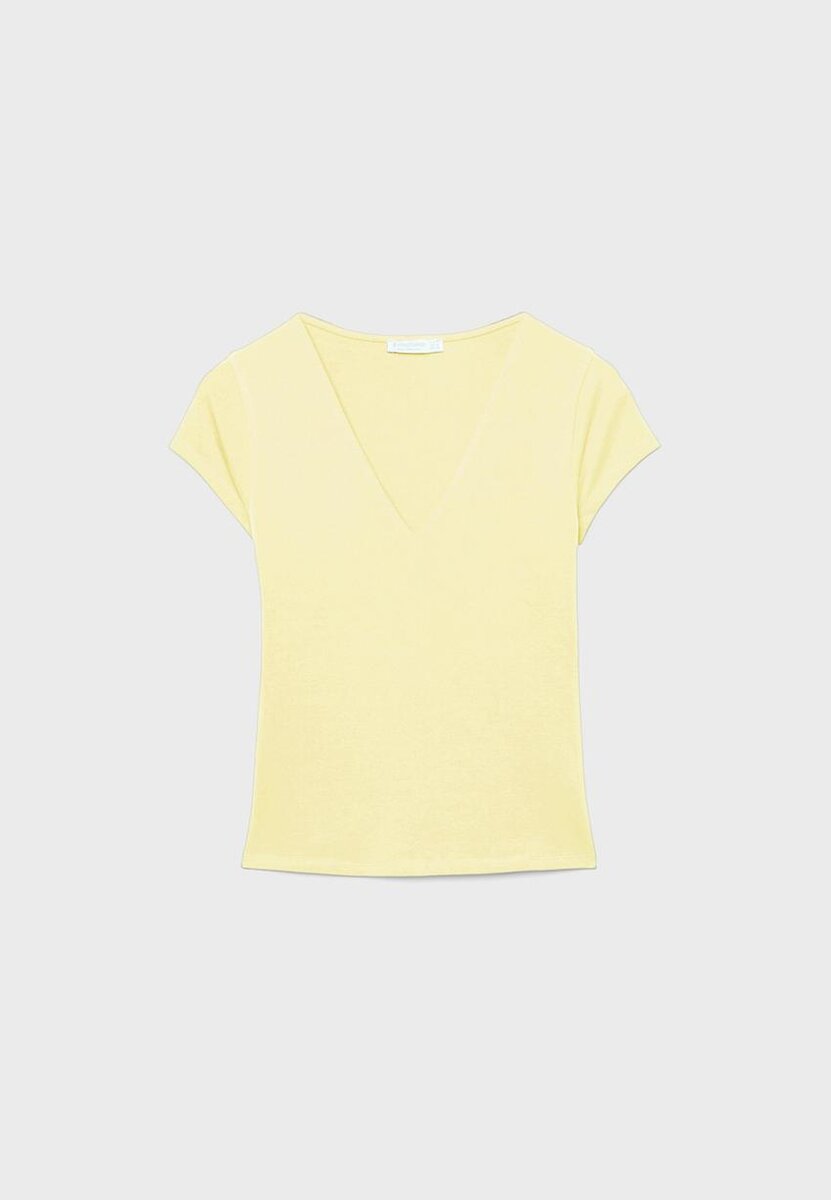 T-shirt ajusté. Col en V et manches courtes. Disponible dans une gamme de couleurs.