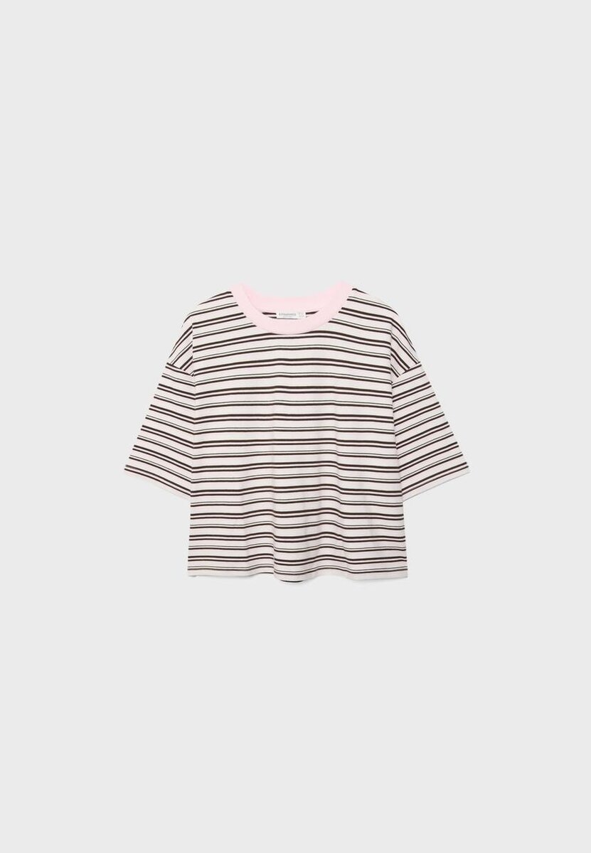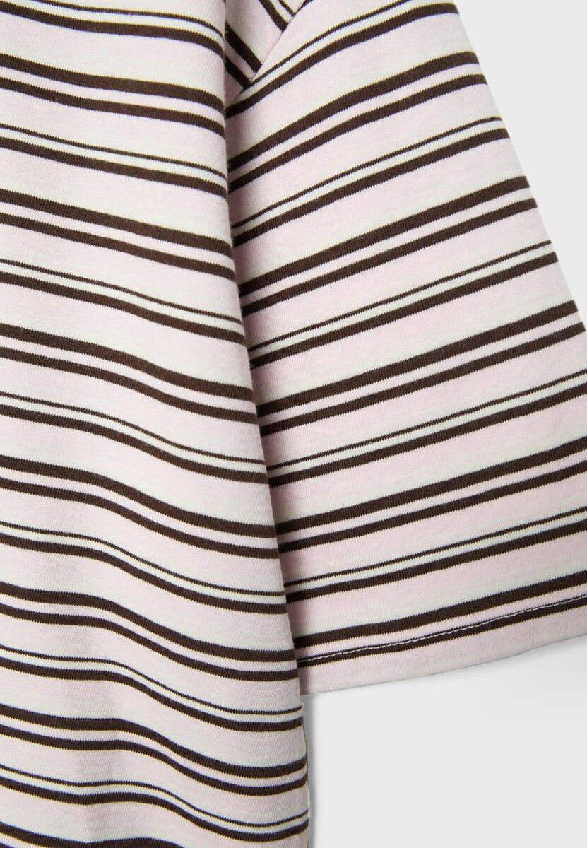 T-shirt à manches courtes rayé chez Stradivarius pour seulement 25,9 $ Disponible pour une durée limitée. Mocacos Nuevo pour femmes Toujours à la mode, venez découvrir dès maintenant !