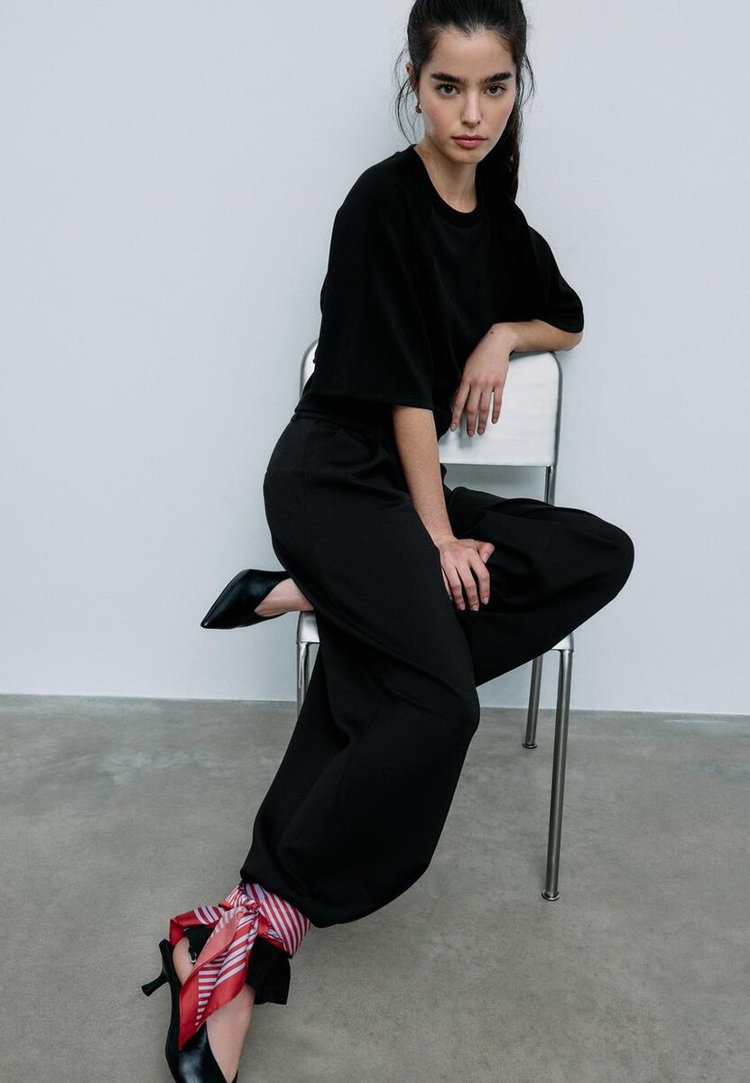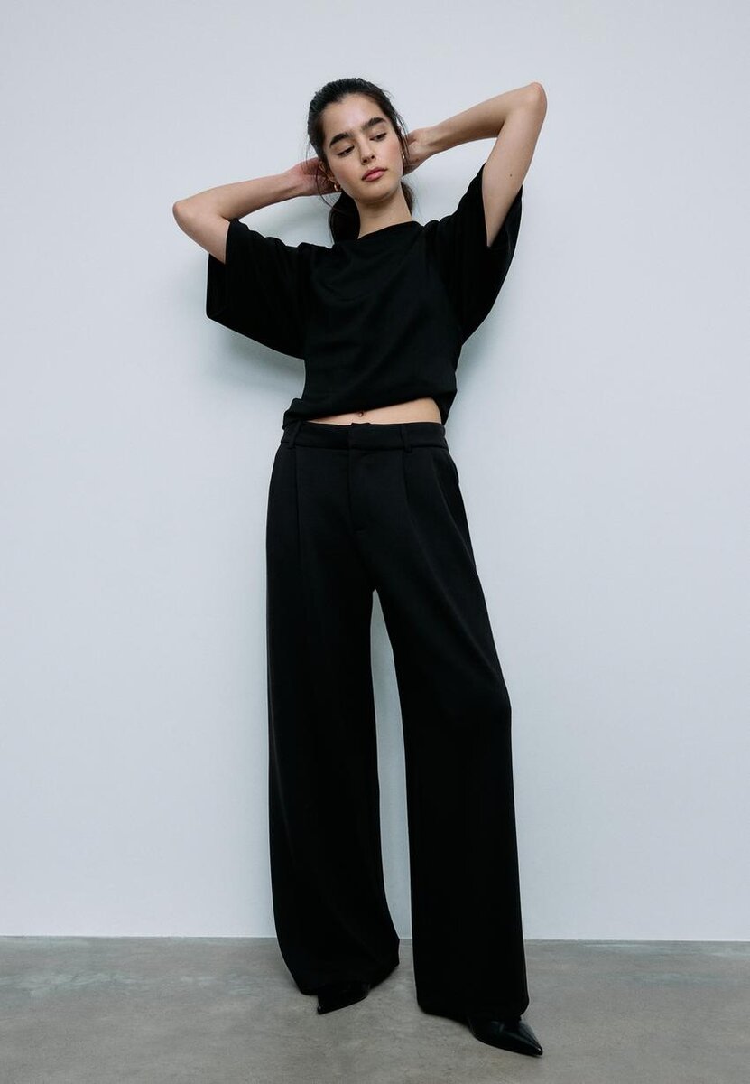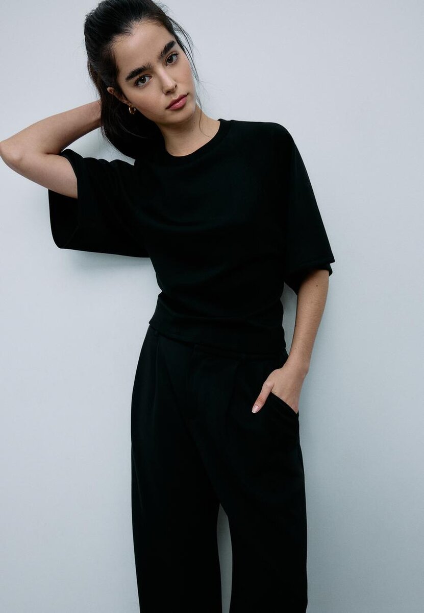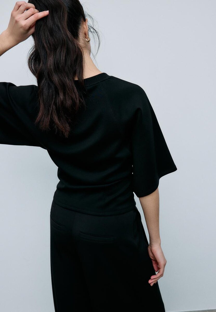 T-shirt en tissu Toucher doux à col rond et manches courtes. Avec pinces à la taille. Disponible en plusieurs couleurs.