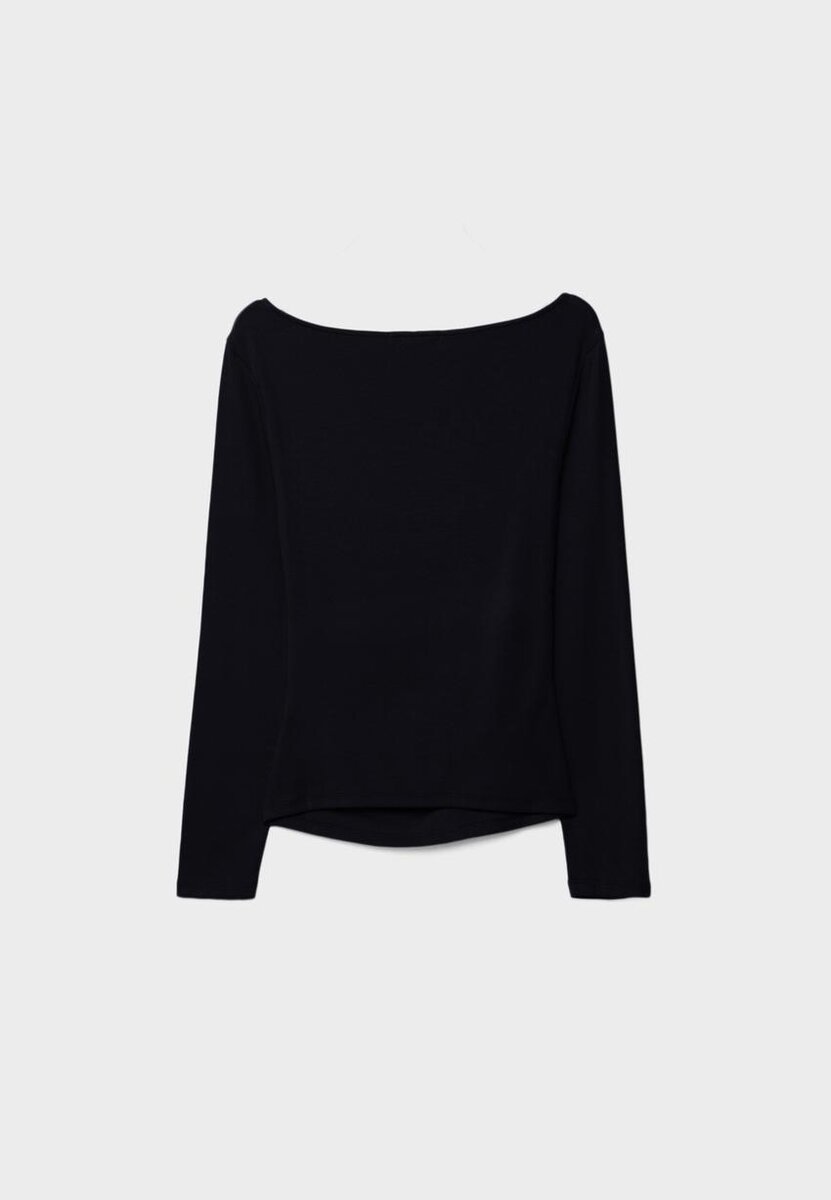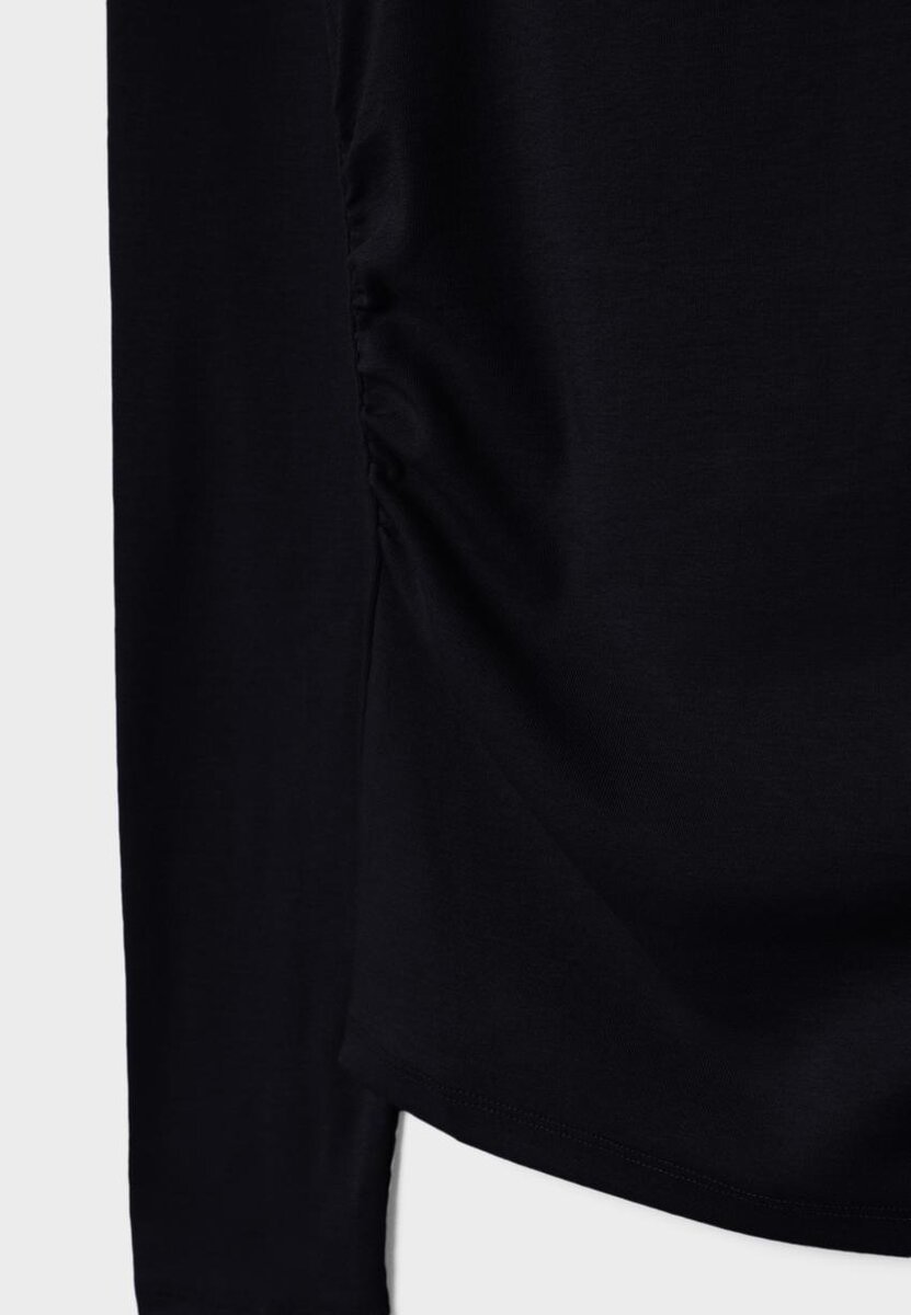 T-shirt à manches longues avec encolure bateau et fronces sur les côtés. Disponible en plusieurs couleurs.