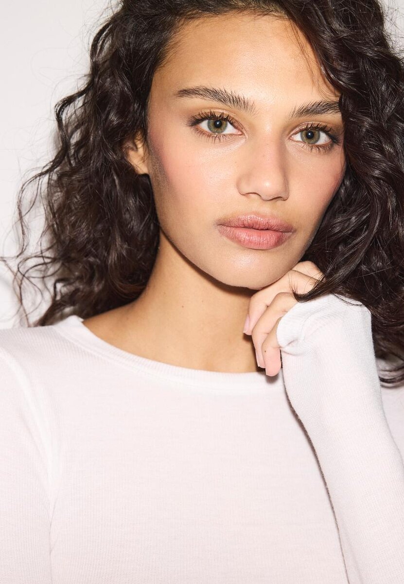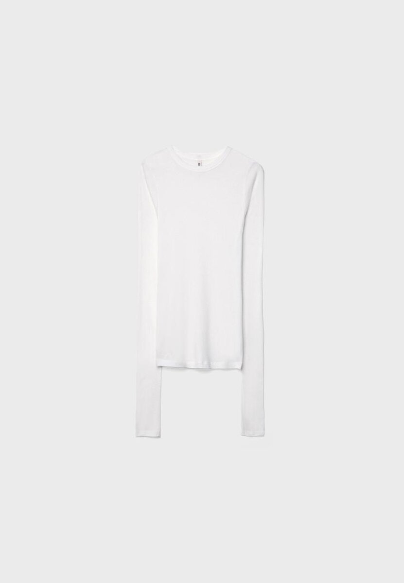 T-shirt ajusté à manches longues et col rond. Disponible en plusieurs couleurs.