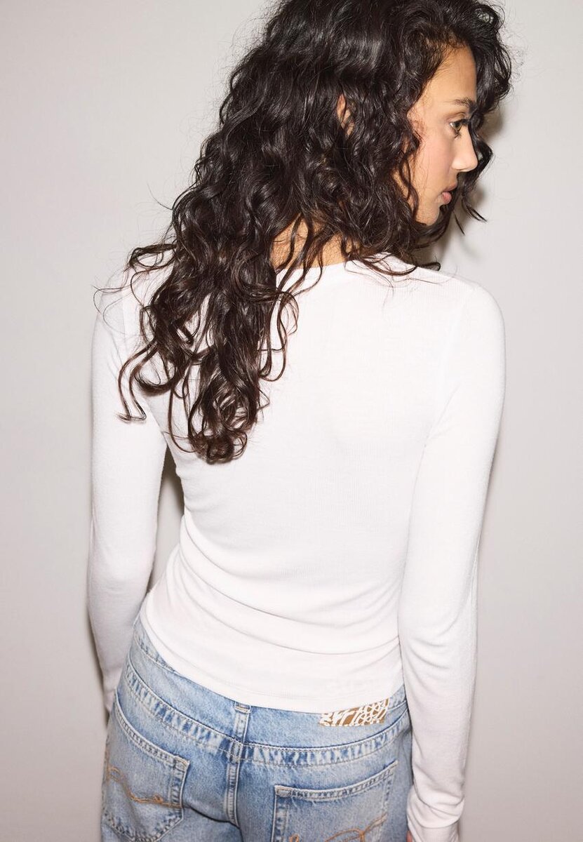 T-shirt à manches longues côtelé chez Stradivarius pour seulement 25,9 $ Disponible pour une durée limitée. Null pour femmes Toujours tendance, venez le découvrir dès maintenant !