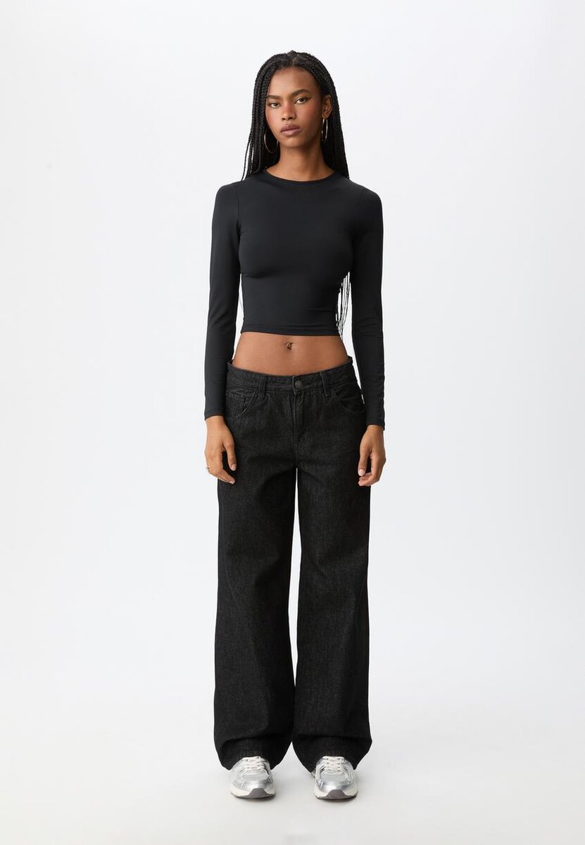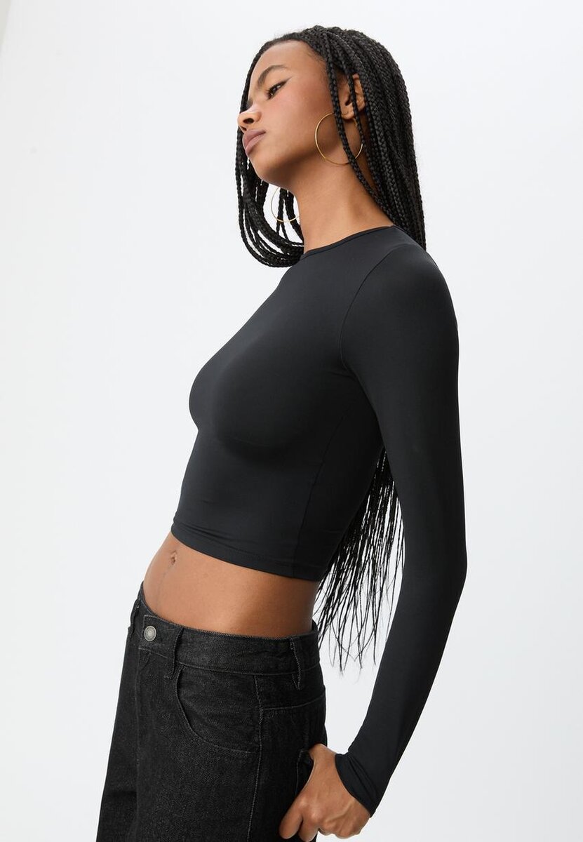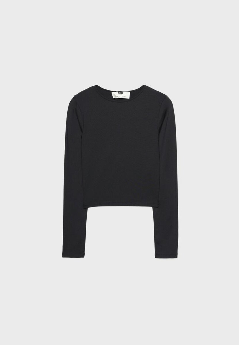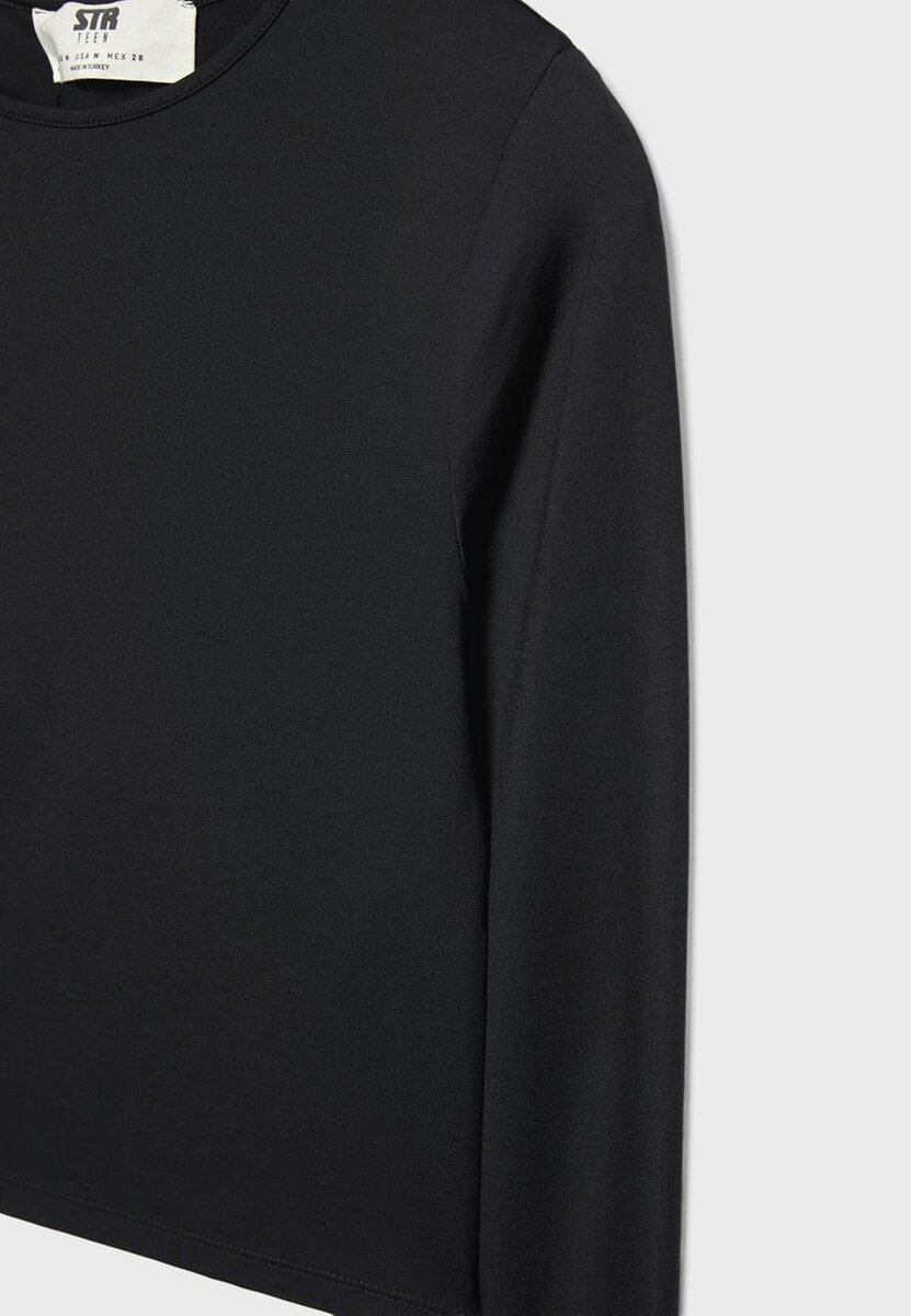 T-shirt ajusté en mélange de polyamide, col rond et manches longues. Disponible en plusieurs couleurs.
