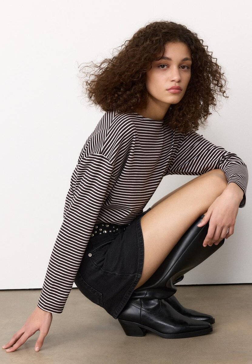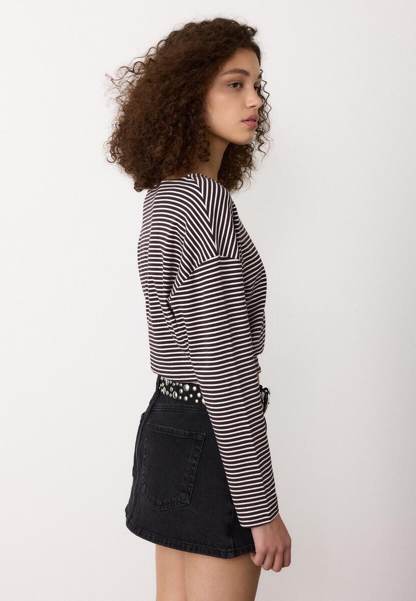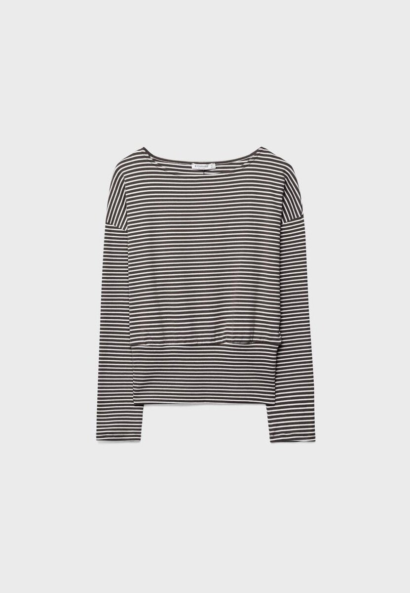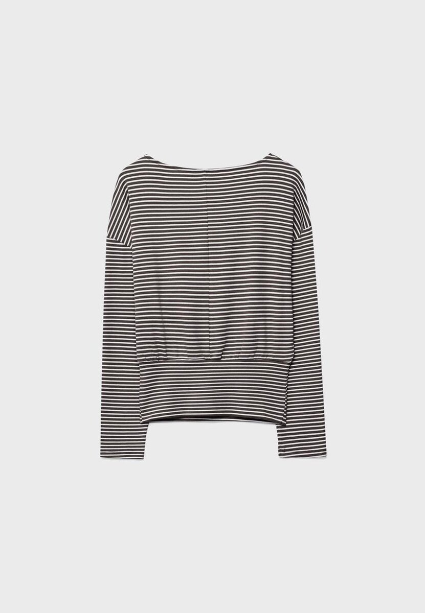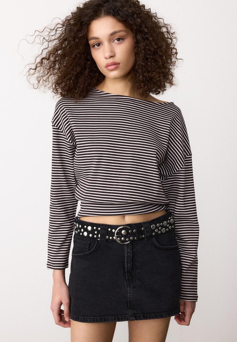 T-shirt à manches longues et col bateau avec ceinture rayée