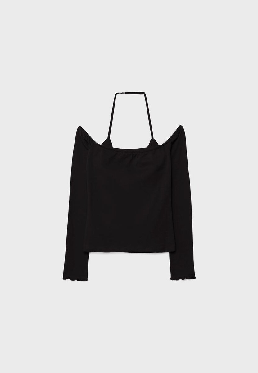 T-shirt à manches longues et col dos nu