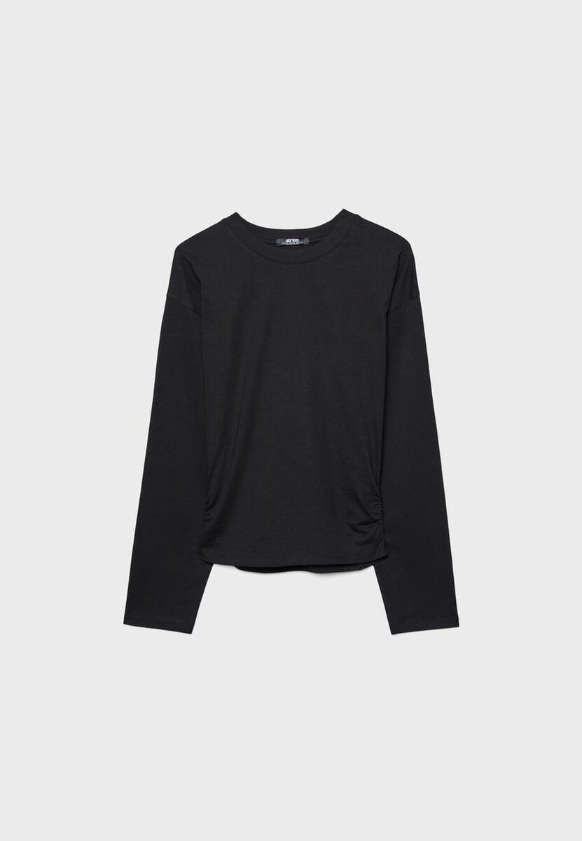 T-shirt à col rond et manches longues. Fronces sur le côté. Disponible en plusieurs couleurs.