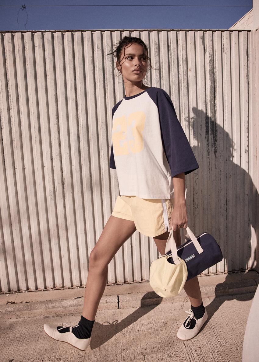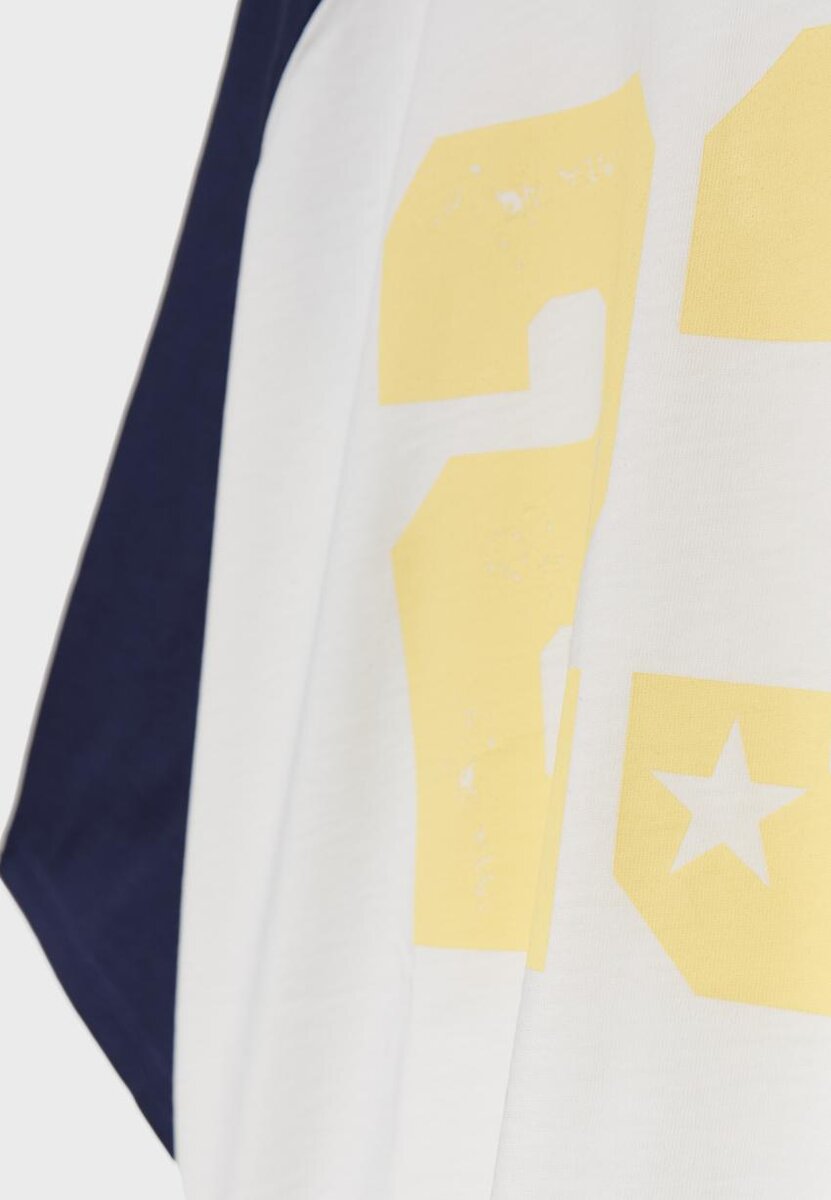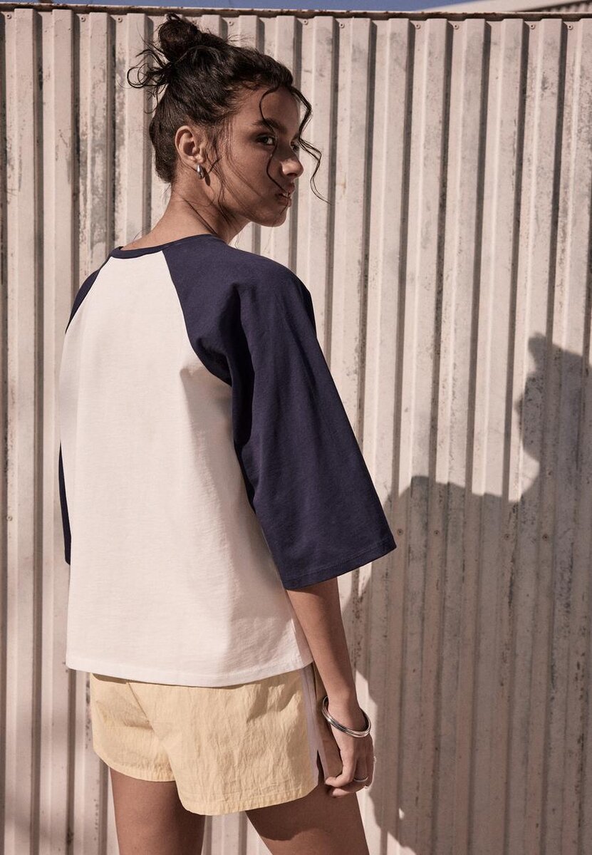 T-shirt coupe classique 100 % coton. Col rond. Manches raglan jusqu’aux coudes. Imprimé sur le devant.