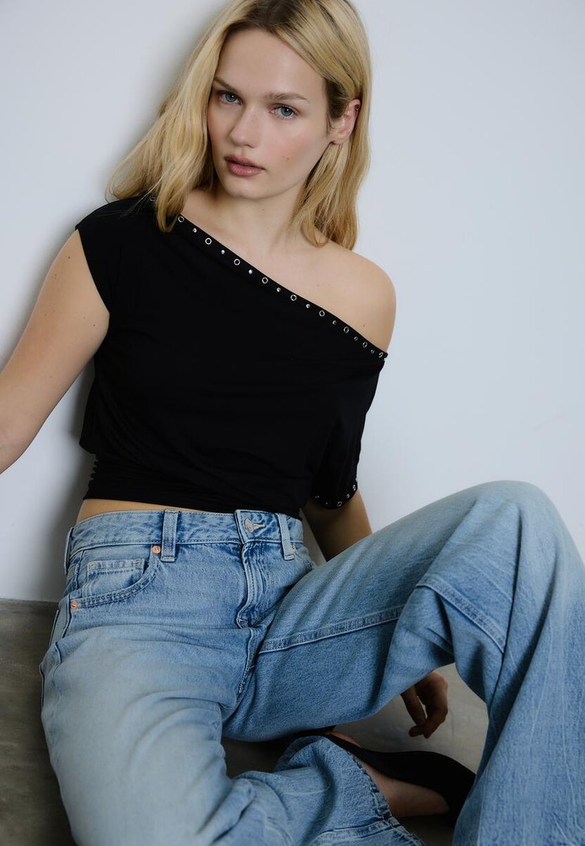 T-shirt asymétrique à clous chez Stradivarius pour seulement 29,9 $ Disponible pour une durée limitée. Mocacos Nuevo pour femmes Toujours à la mode, venez découvrir dès maintenant !