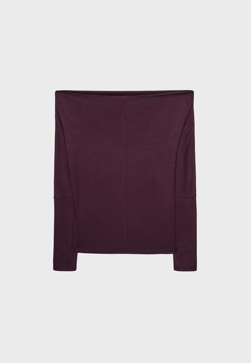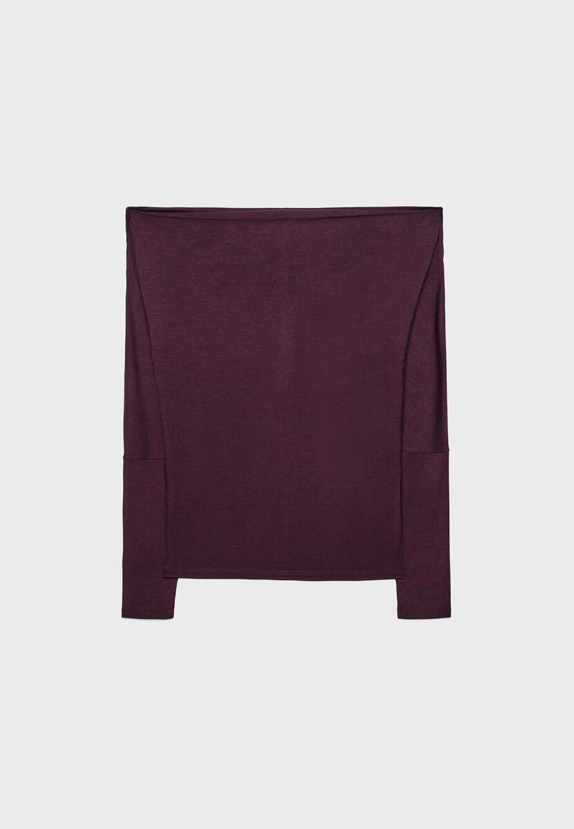 T-shirt fluide et au toucher doux. Encolure asymétrique et manches longues terminées par un revers, avec une épaule dénudée. Disponible en plusieurs couleurs.