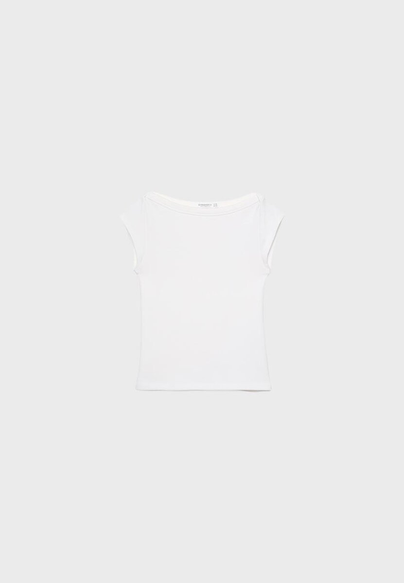T-shirt basique à col bateau chez Stradivarius pour seulement 17,9 $, disponible pour une durée limitée. T-shirts pour femmes toujours tendance, venez les découvrir dès maintenant !
