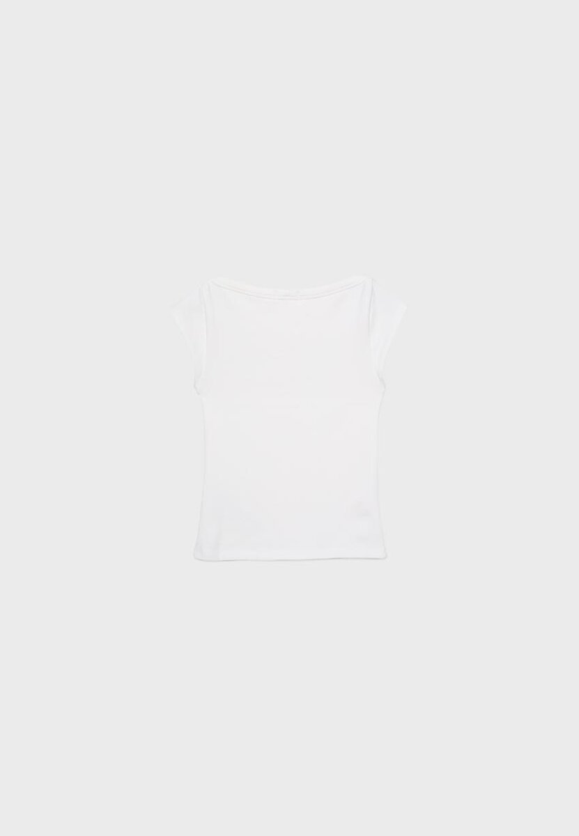 T-shirt ajusté à col bateau et manches courtes. Disponible en plusieurs couleurs.