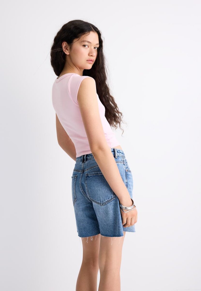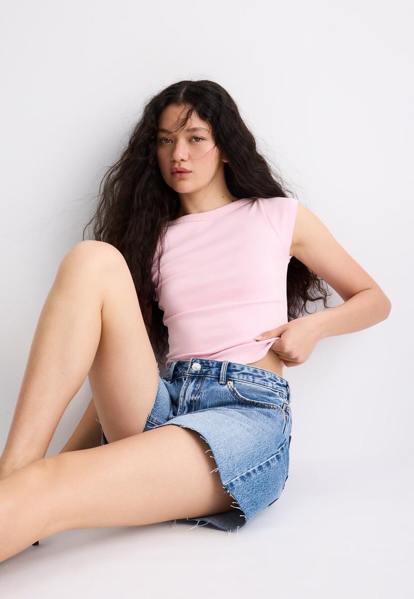 T-shirt basique à col bateau chez Stradivarius pour seulement 17,9 $ Disponible pour une durée limitée. Mocacos Nuevo pour femmes Toujours à la mode, venez les découvrir dès maintenant !