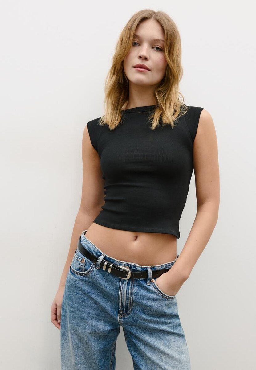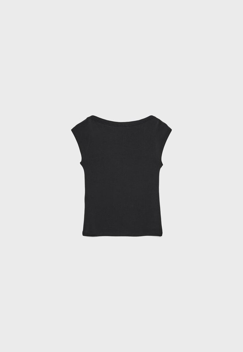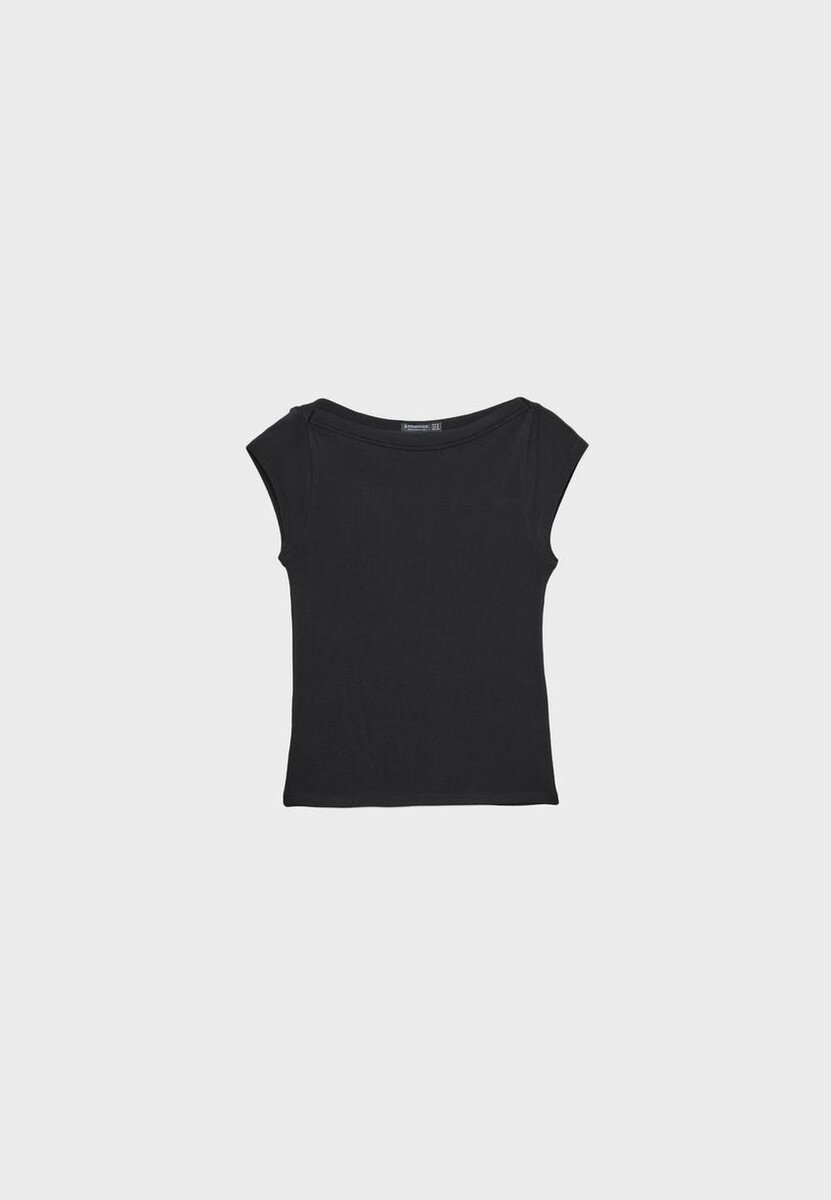 T-shirt ajusté à col bateau et manches courtes. Disponible en plusieurs couleurs.