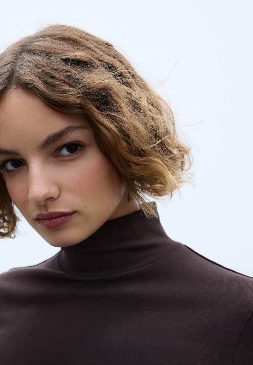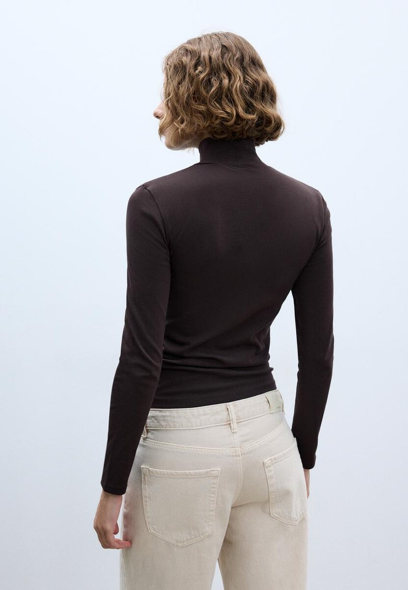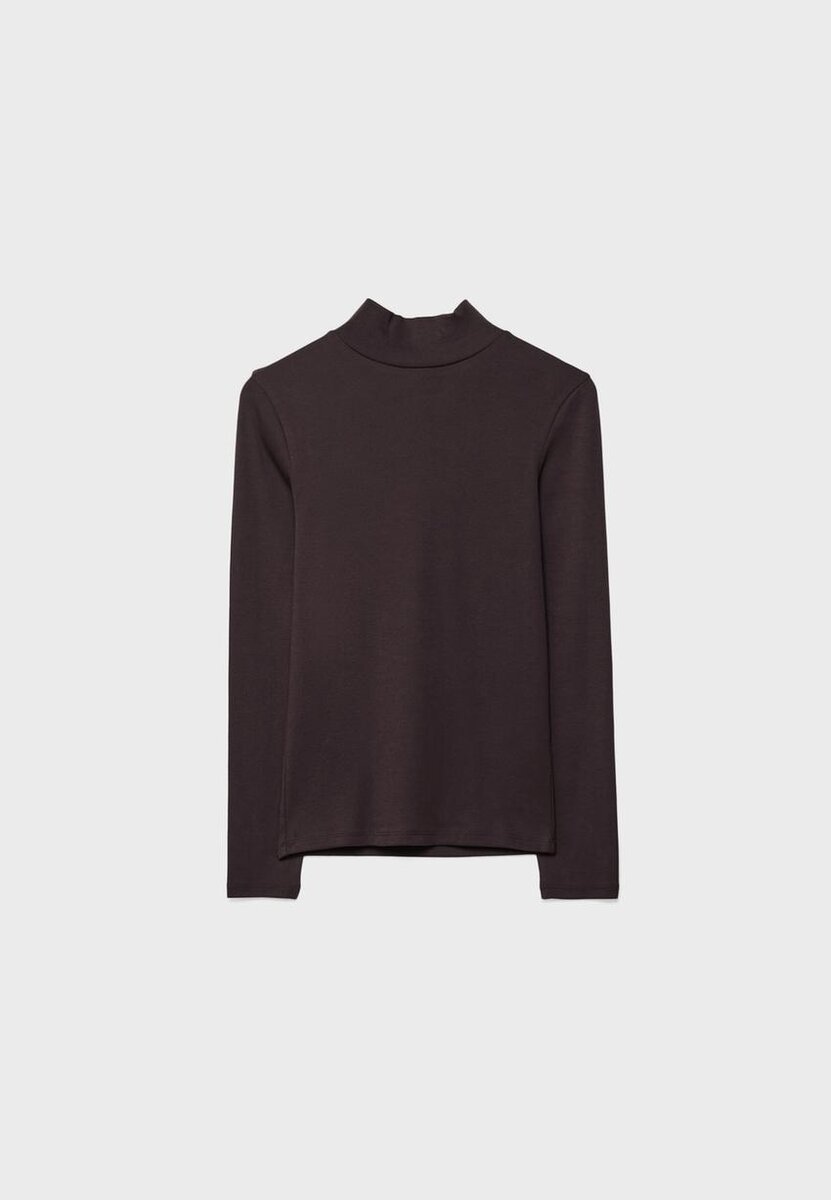 T-shirt basique en tissu au toucher doux. Doté d’un col montant et de manches longues. Disponible en plusieurs couleurs.