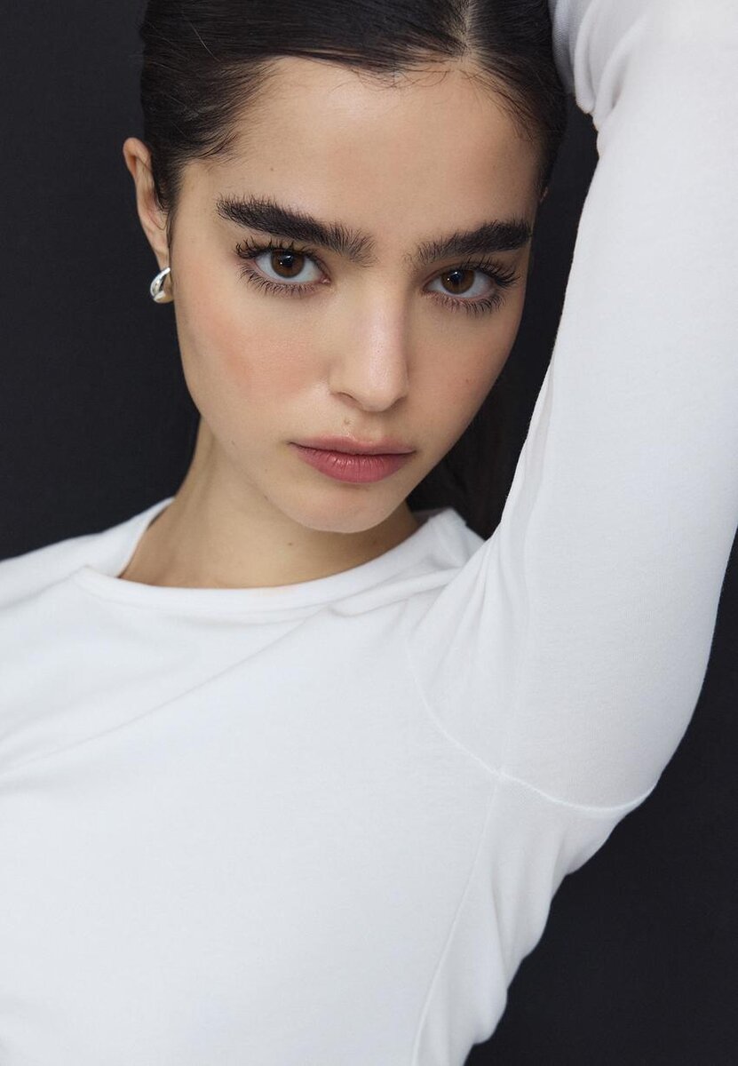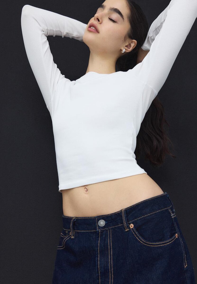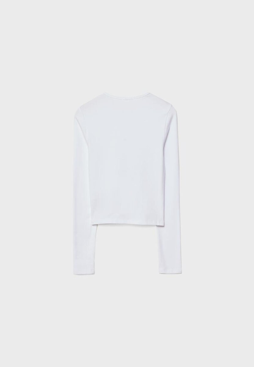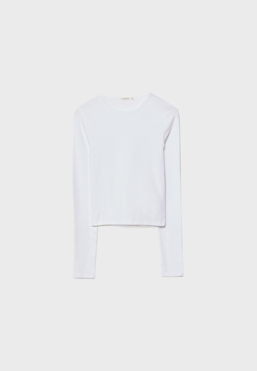 T-shirt basique ajusté en coton et élasthanne. Col rond et manches longues. Disponible en plusieurs couleurs.