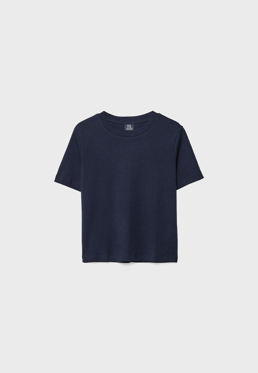 T-shirt basique coupe droite classique en coton. Col rond et manches courtes. Disponible en plusieurs couleurs.