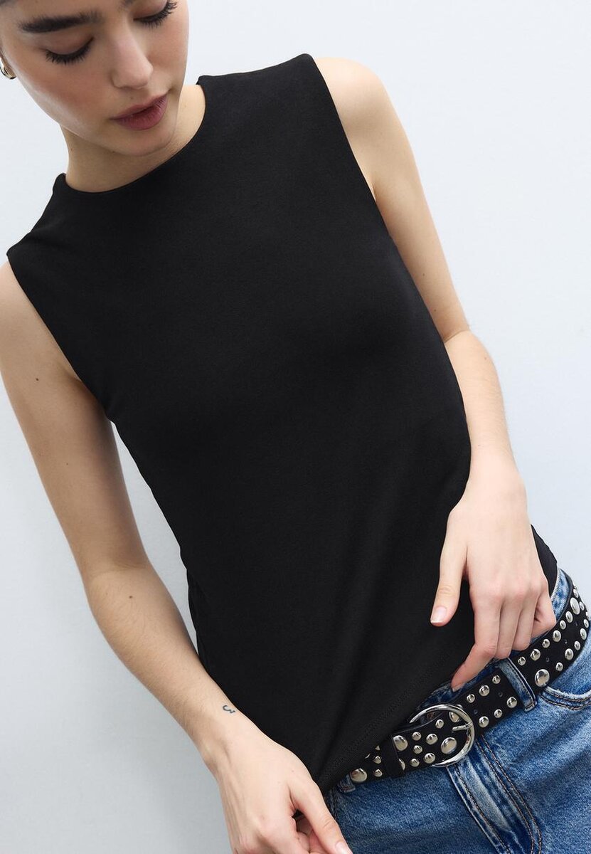 T-shirt basique à col rond. Sans manches. Disponible en plusieurs couleurs.