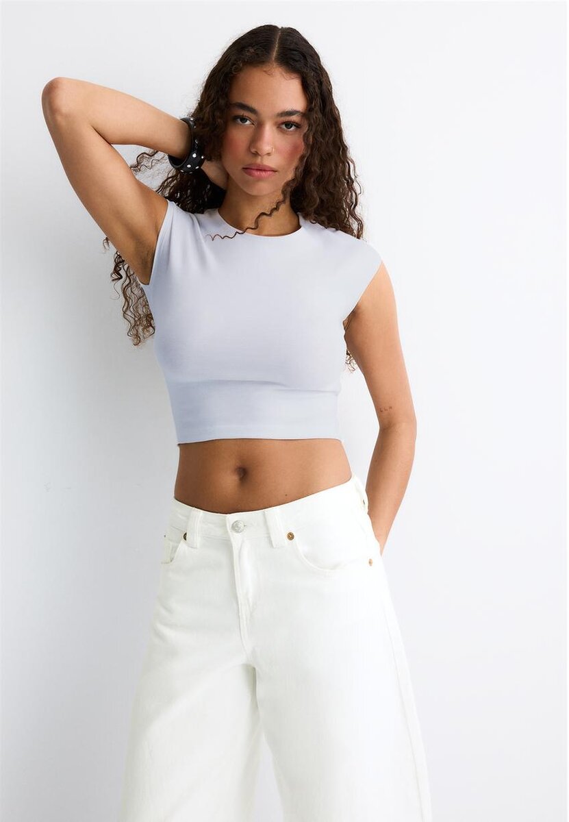 T-shirt court ajusté à col rond et manches courtes. Disponible en plusieurs couleurs.