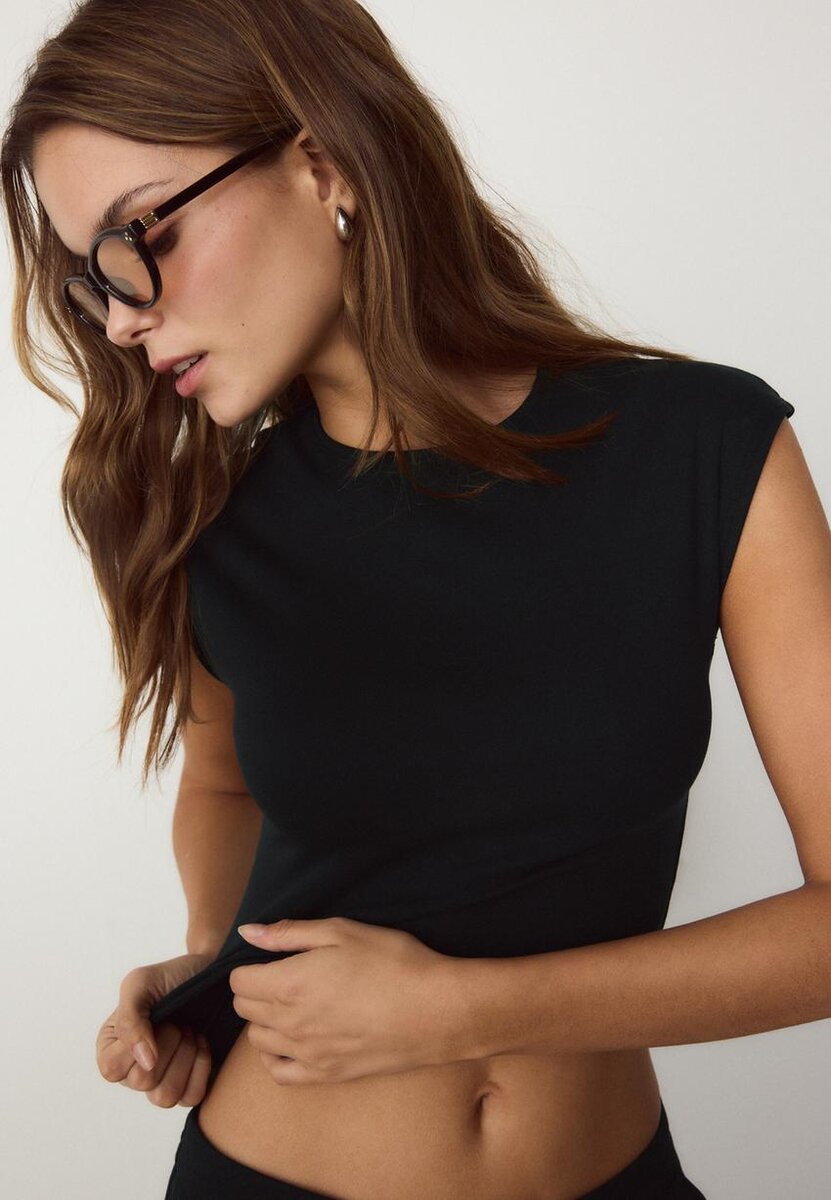 T-shirt court ajusté à col rond et manches courtes. Disponible en plusieurs couleurs.