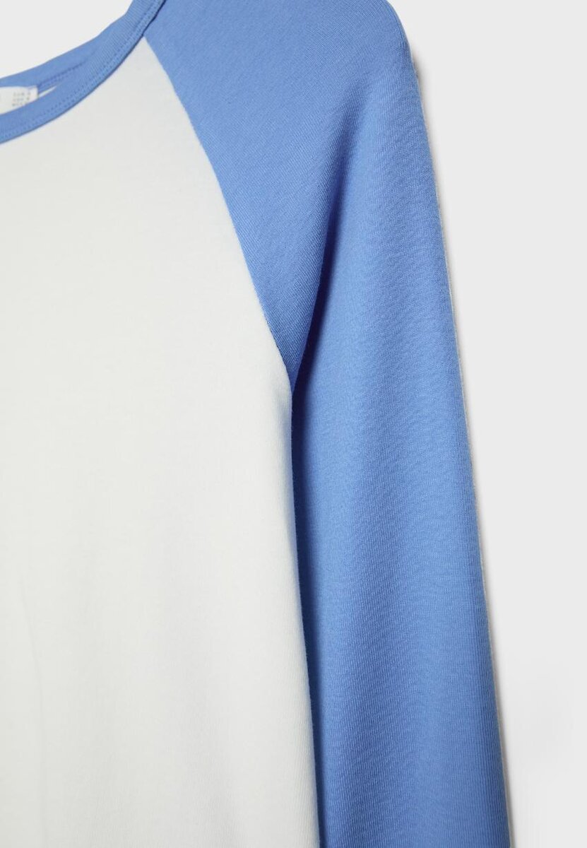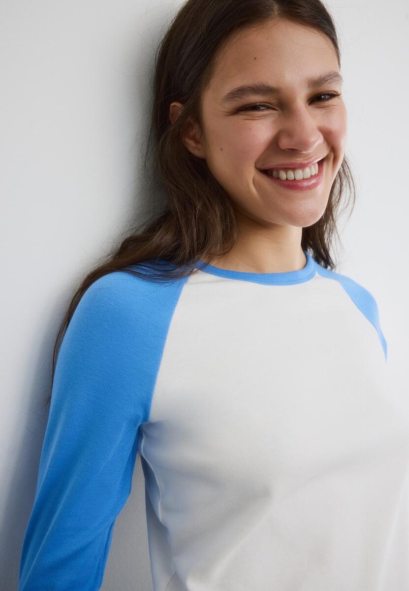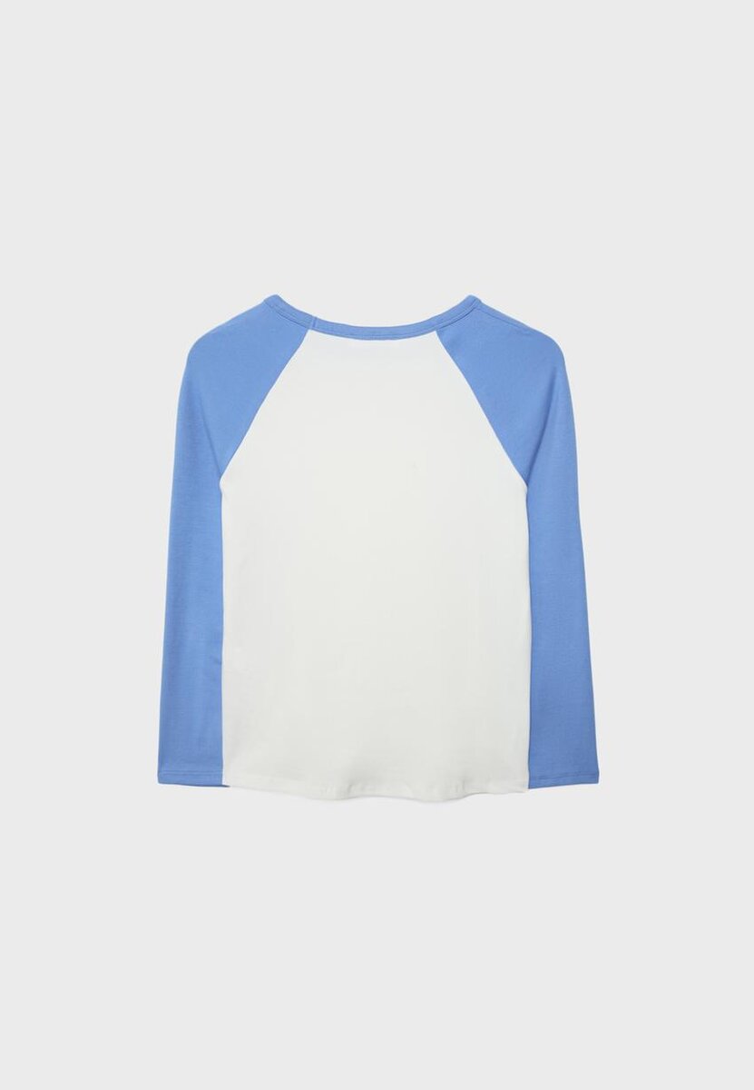 T-shirt à col rond avec manches longues contrastées. Ourlet asymétrique.