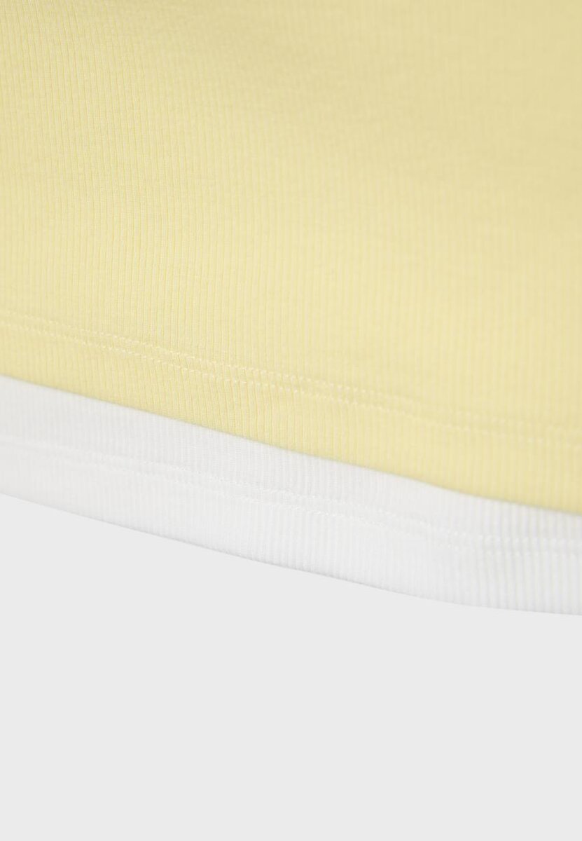 T-shirt à col rond et bretelles. Avec un motif double T-shirt contrasté. Disponible dans une gamme de couleurs.