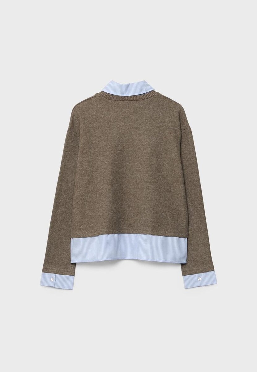 T-shirt en maille au toucher doux, à col rond et manches longues. Col, poignets et ourlet contrastés en bi-matière. Disponible en plusieurs couleurs.