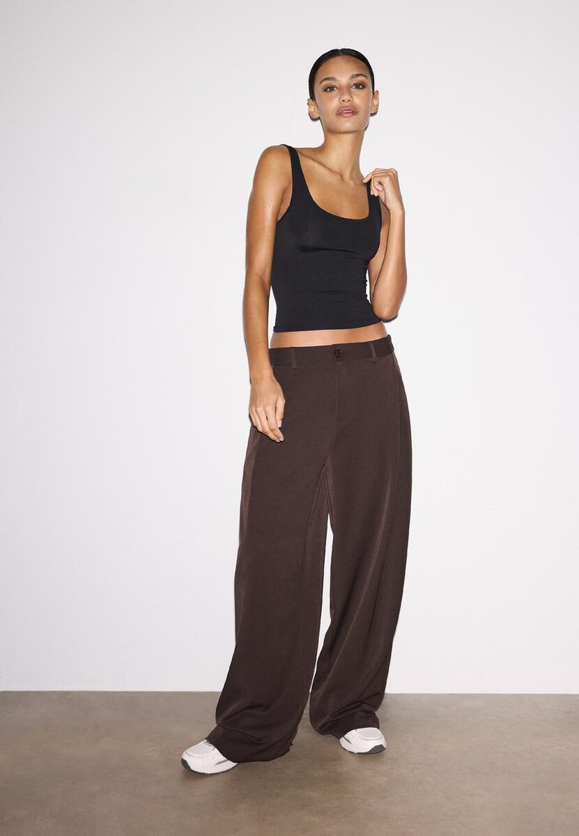 T-shirt court ajusté à encolure ronde et bretelles larges. Disponible en plusieurs couleurs.