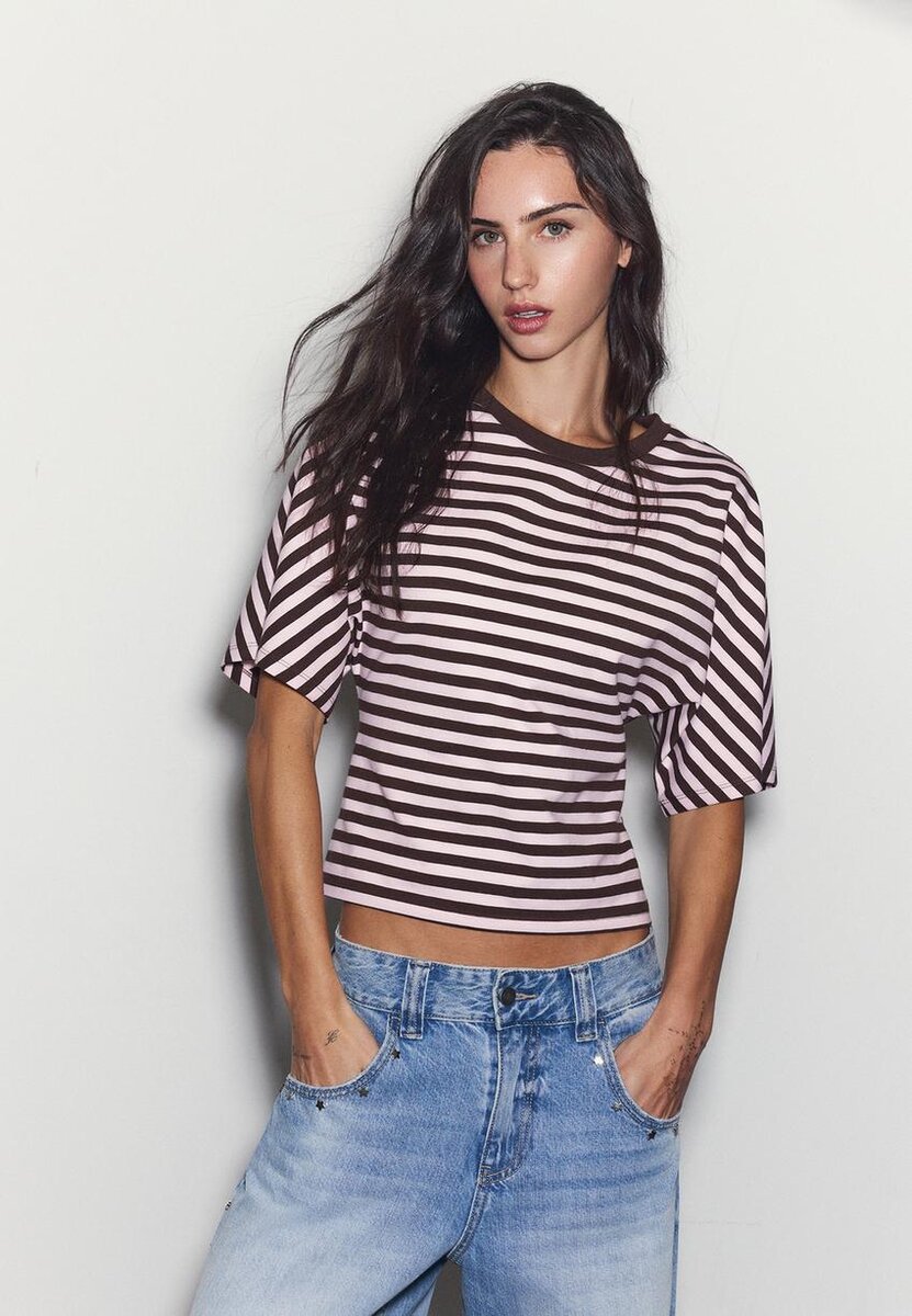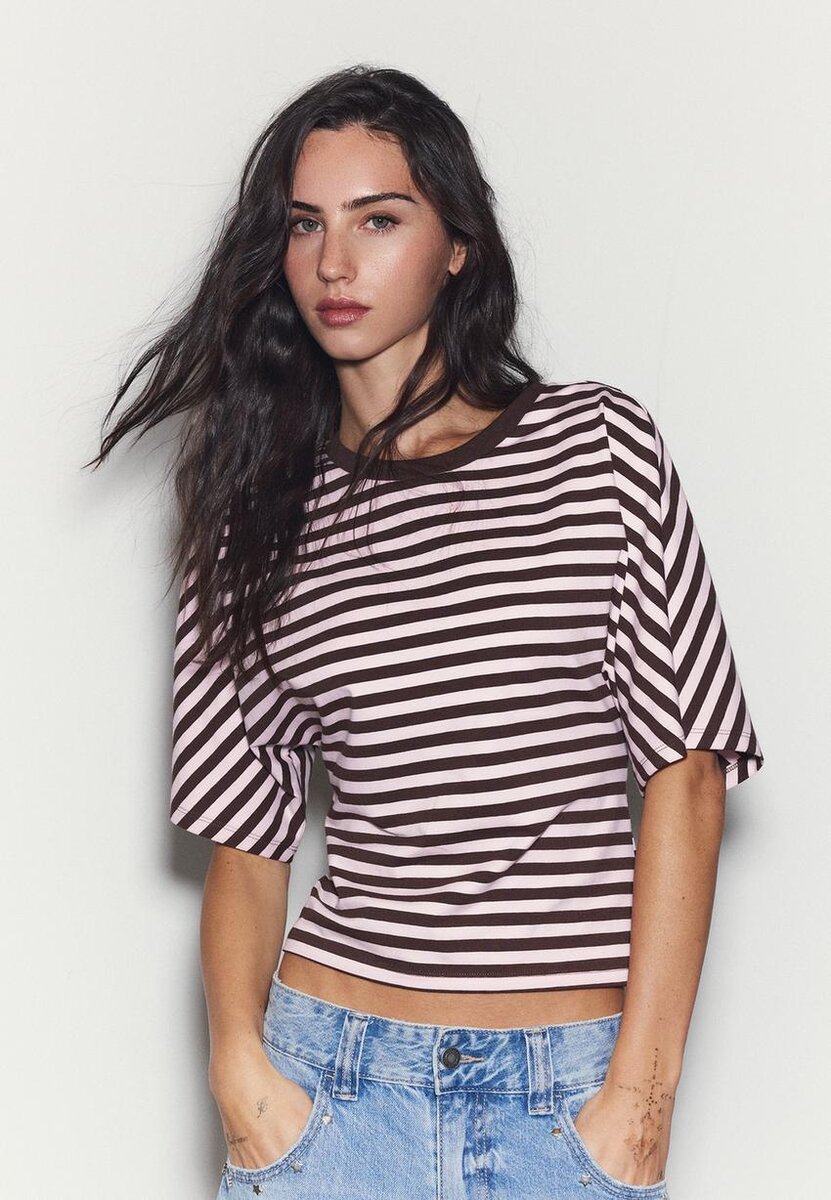 Col rond, t-shirt japonais à manches courtes. Ourlet ajusté. Disponible en plusieurs couleurs.