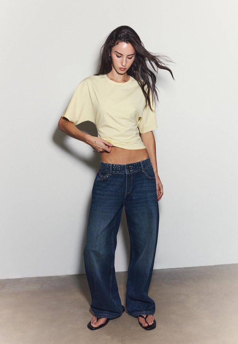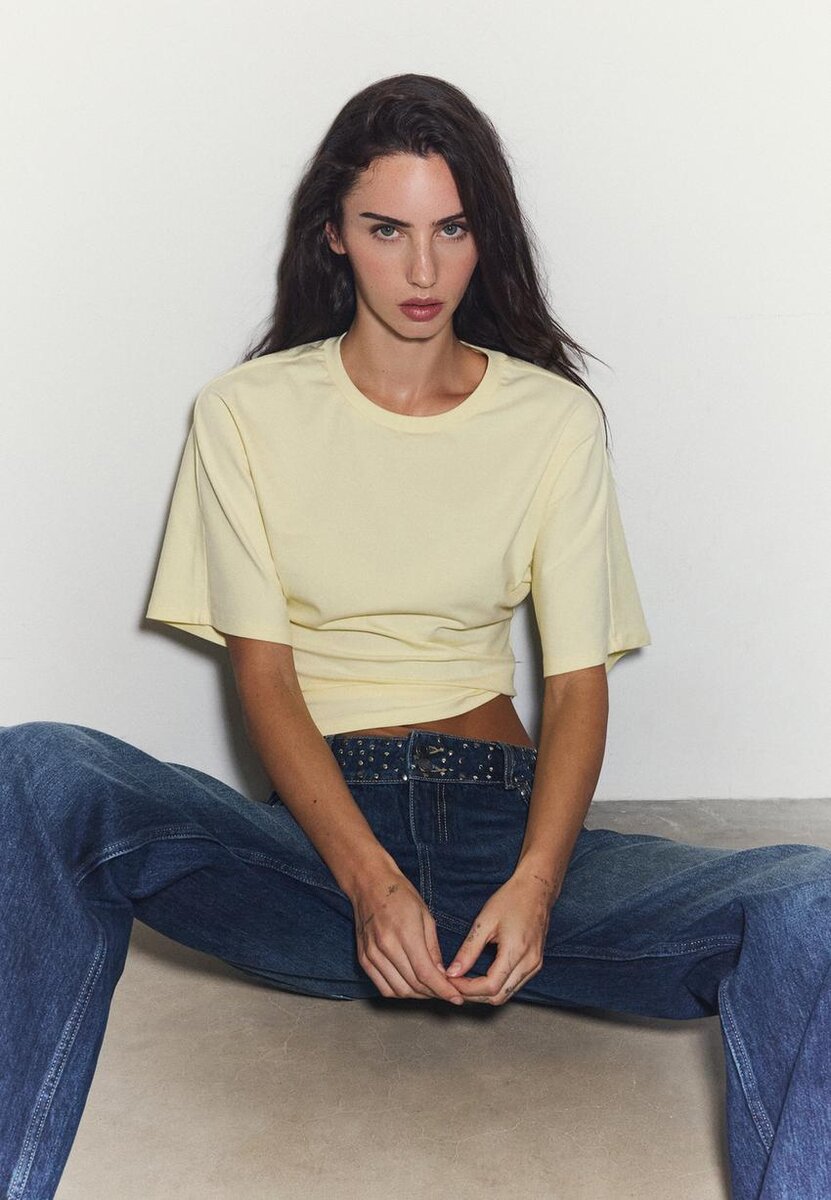 T-shirt à col rond et manches courtes de style japonais. Ourlet ajusté. Disponible en plusieurs couleurs.