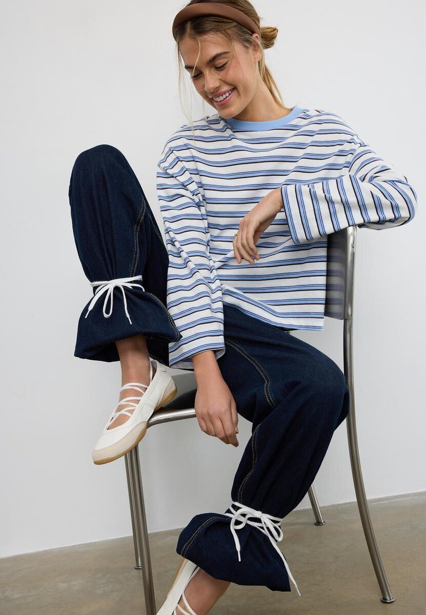 T-shirt oversize à manches longues rayé