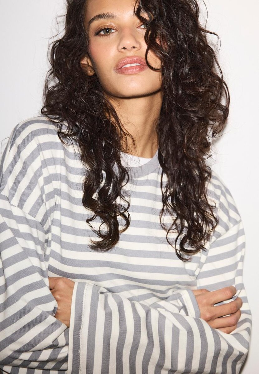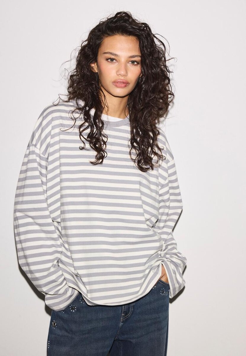 T-shirt oversize en coton à col rond et manches longues. Disponible en plusieurs couleurs.