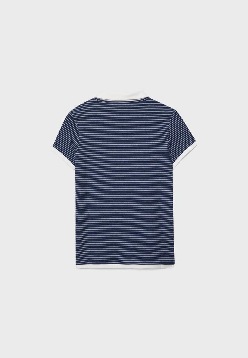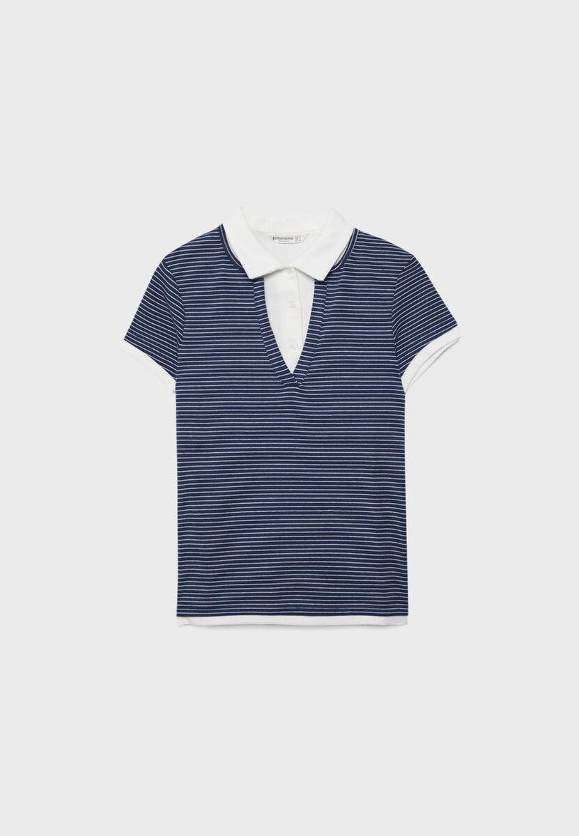 T-shirt polo à col et manches courtes. Doté d’une superposition de tissu double épaisseur contrastée. Disponible en plusieurs couleurs.