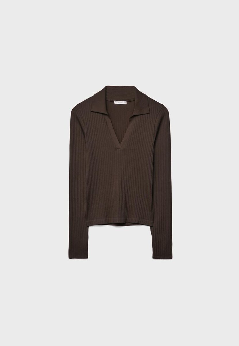 T-shirt ajusté Seamless. Col à revers et encolure en V. Manches longues. Disponible en plusieurs couleurs.