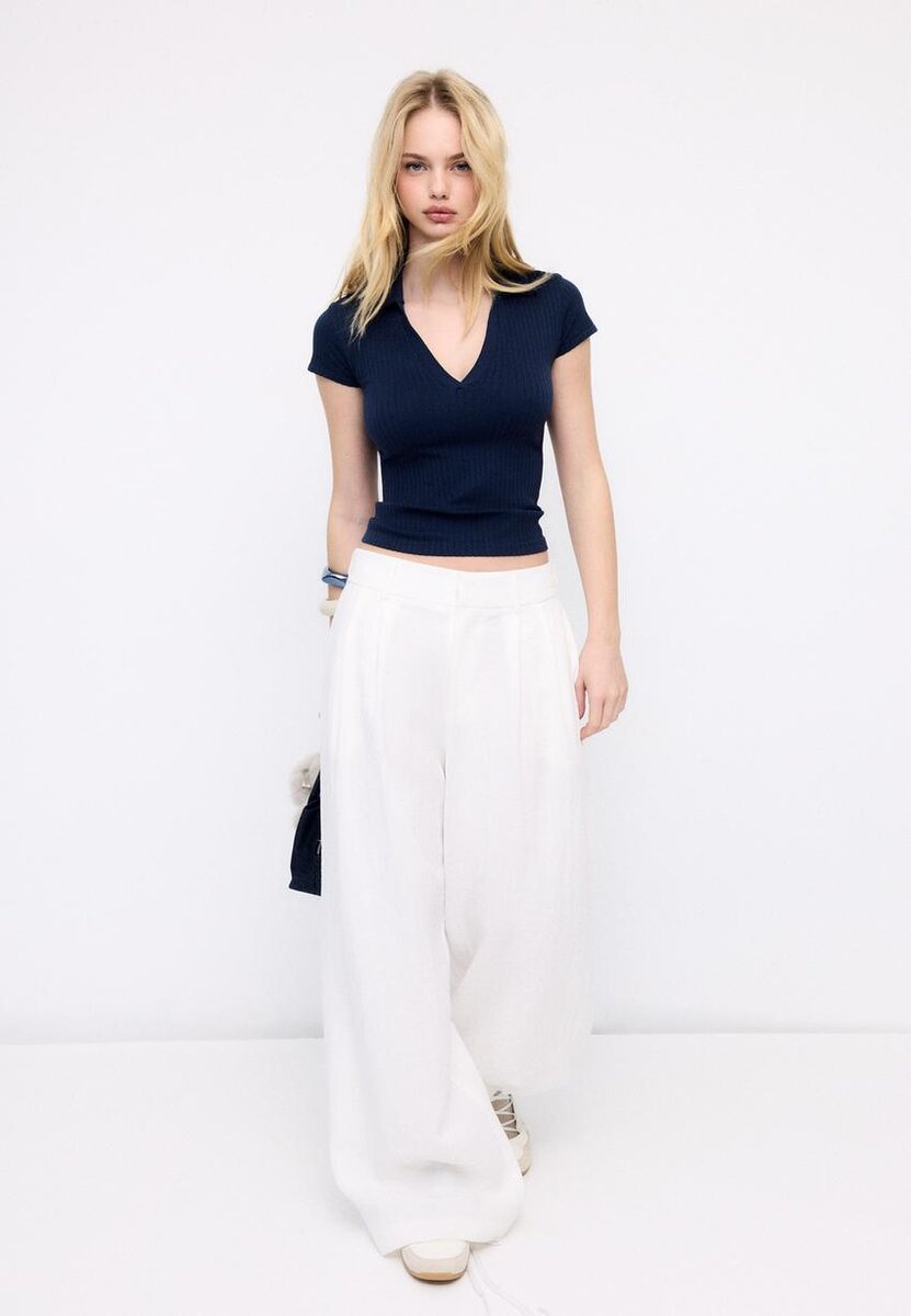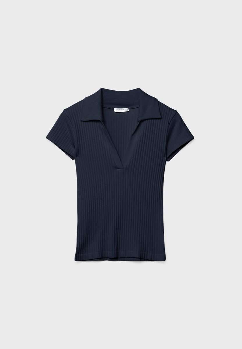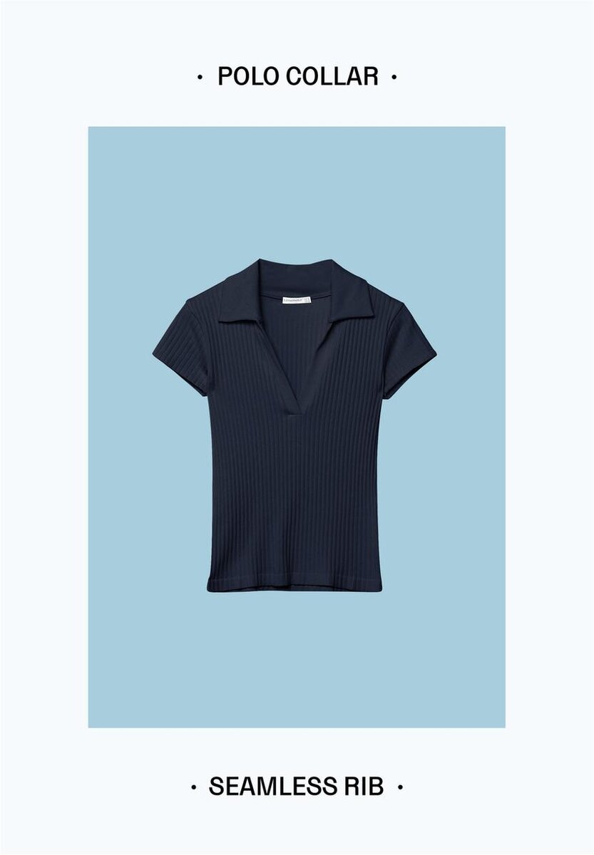 T-shirt ajusté Seamless avec col Johnny et encolure en V. Manches courtes. Disponible en plusieurs couleurs.