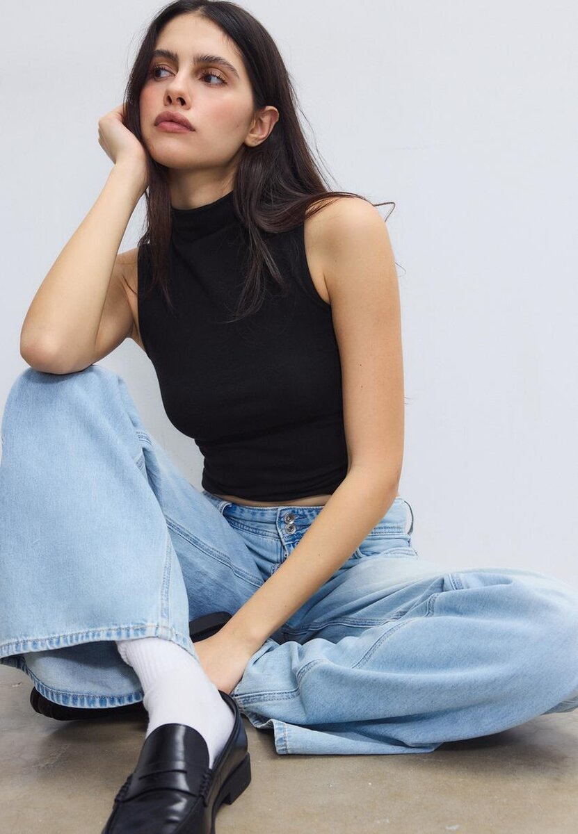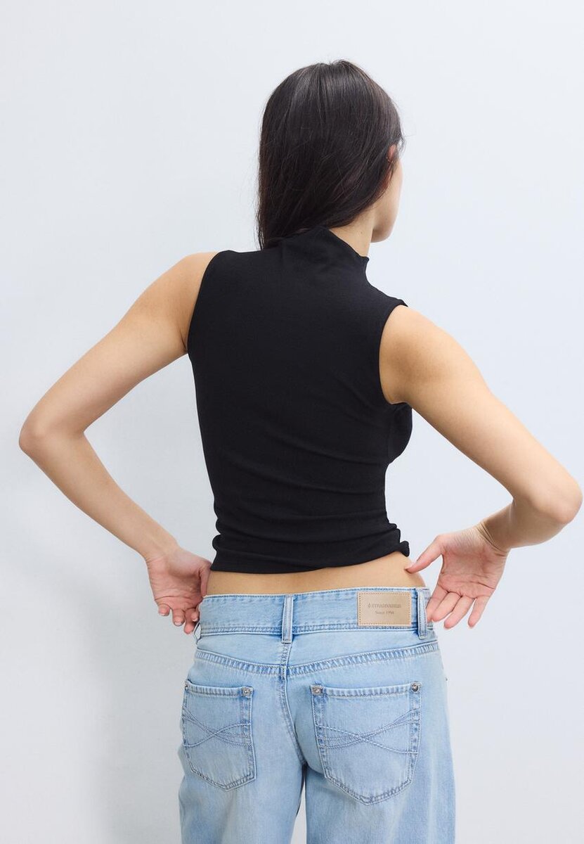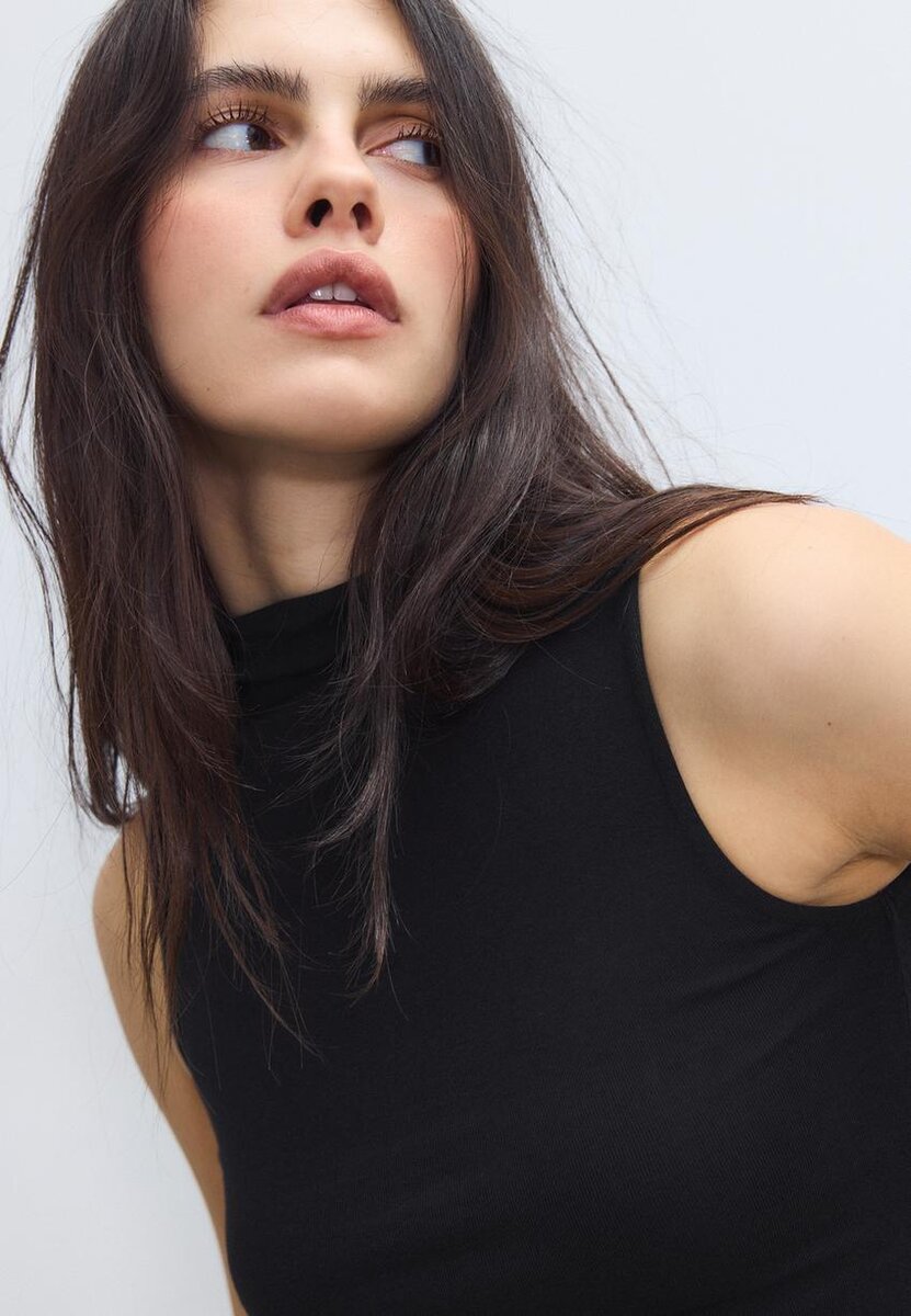 T-shirt sans manches à col cheminée chez Stradivarius pour seulement 14,9 $ Disponible pour une durée limitée. Mocacos Nuevo pour femmes Toujours à la mode, venez découvrir dès maintenant !
