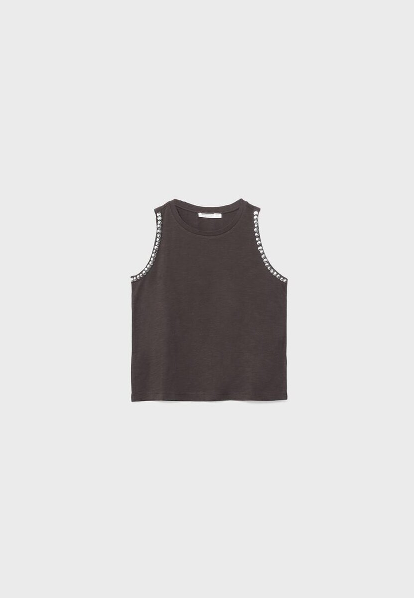 T-shirt sans manches avec broderie clous