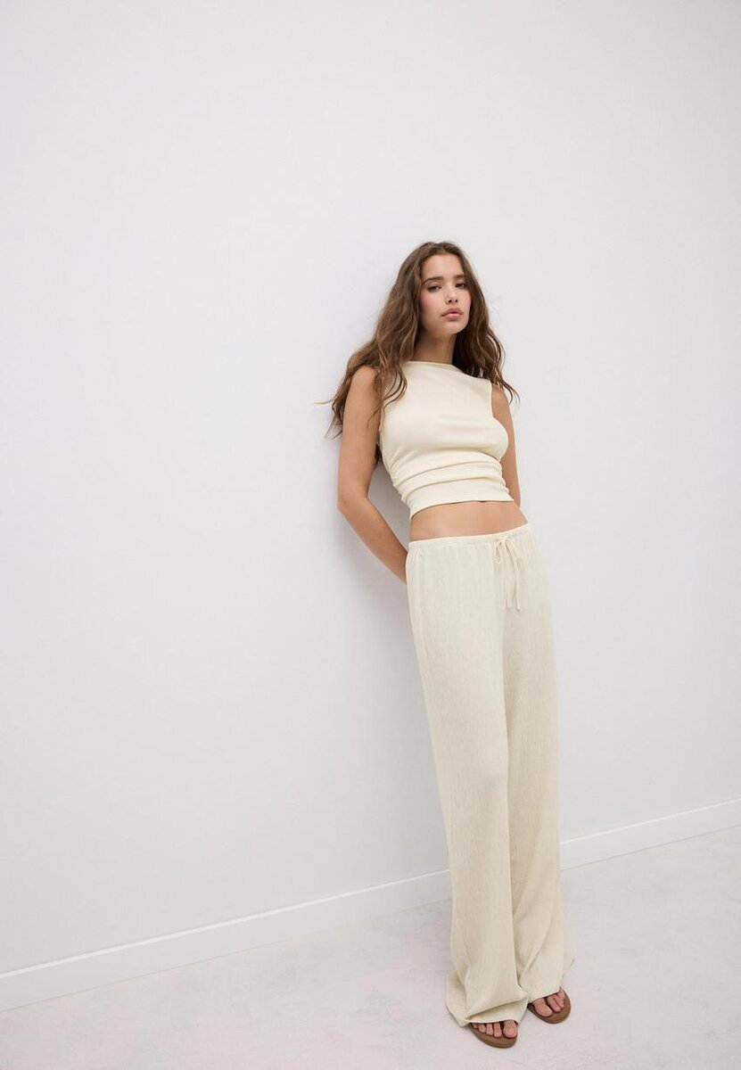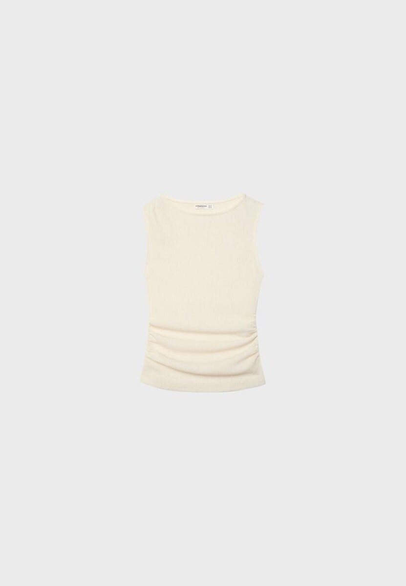 Hauts texturés composés à 19 % de viscose. Col bateau et coupe sans manches. Fronces sur les côtés. Ourlet droit.