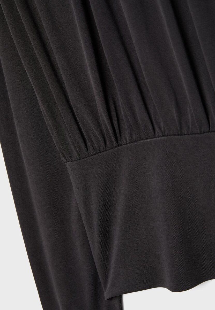 T-shirt fluide à touché doux avec encolure asymétrique et manches longues à ourlets retroussés. Avec des fronces sur la partie supérieure et un ourlet ajusté.